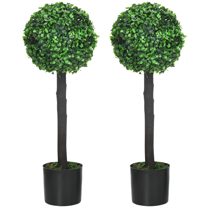 Set Of 2 Artificial Plants Boxwood Ball Trees In Pot Fake Plants For Home Indoor Outdoor Decor, 20x20x60cm, Green