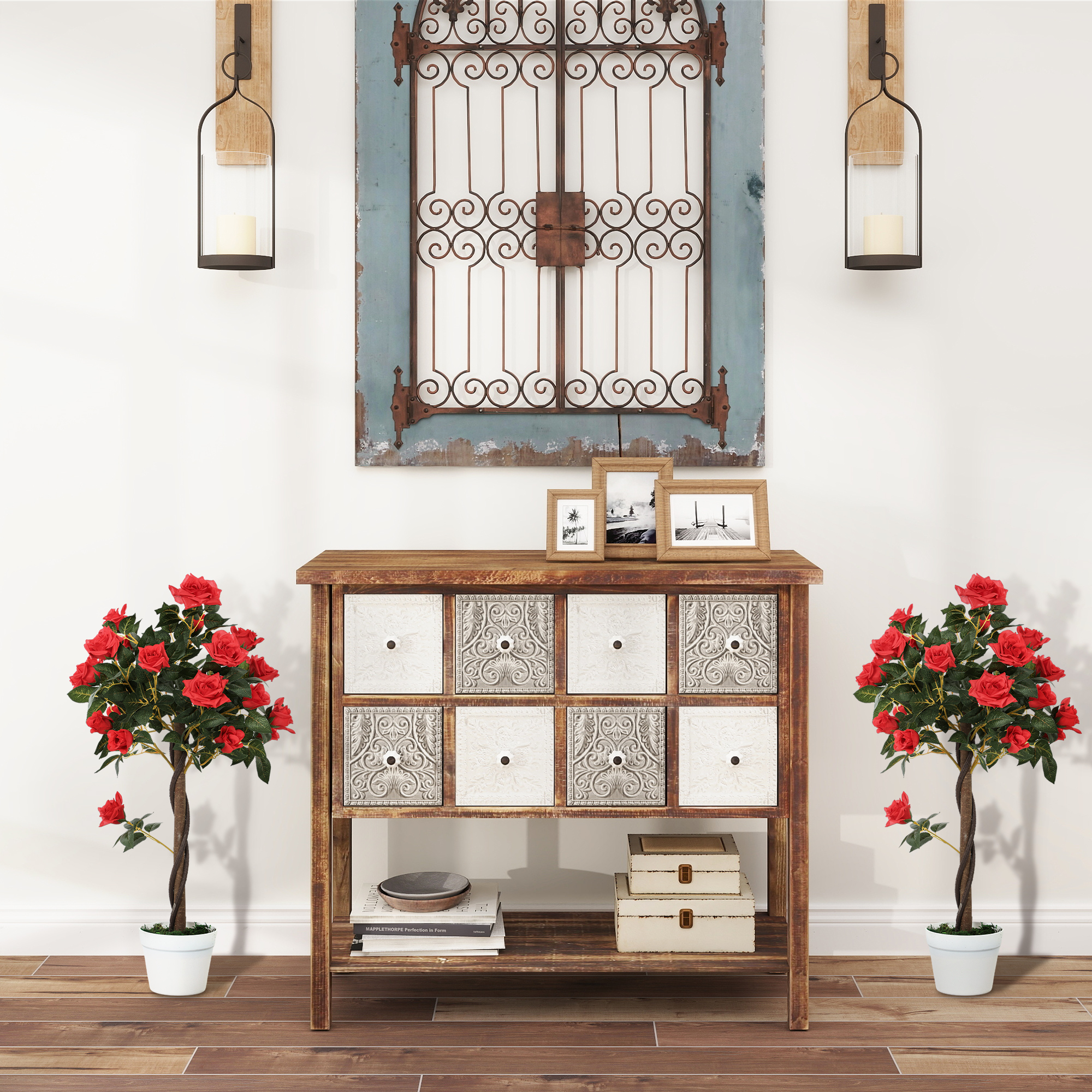 Set Of 2 Artificial Plants White Rose Floral In Pot, Fake Plants For Home Indoor Decor, 90cm, Red