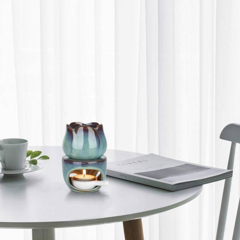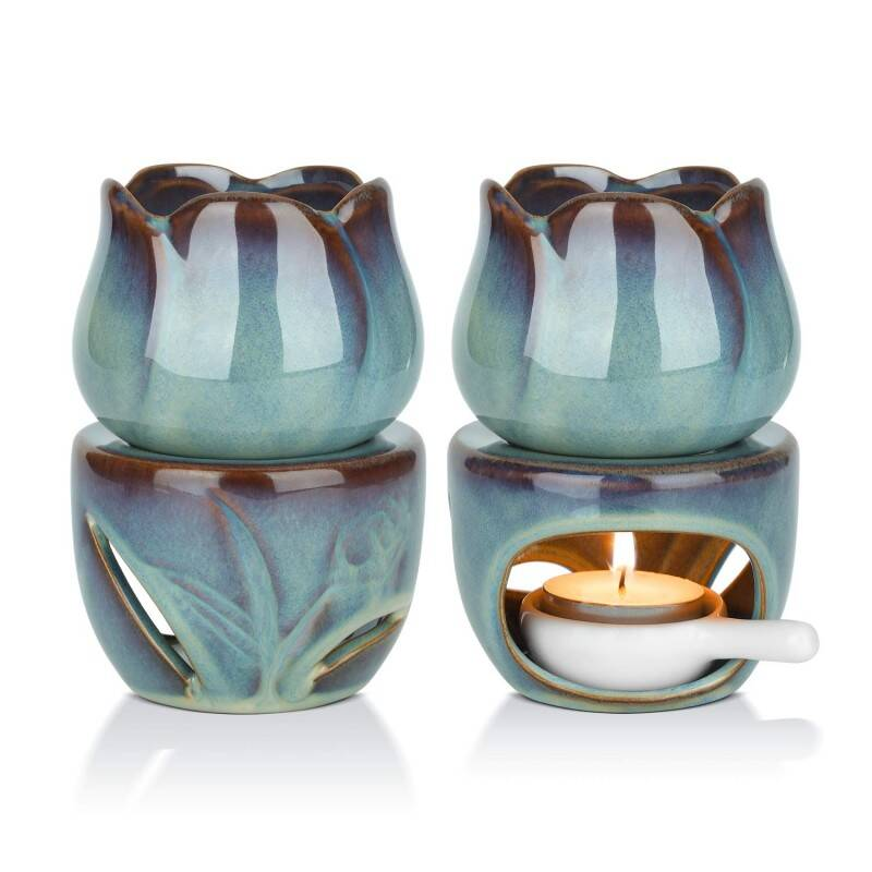 Set of 2 Ceramic wax burner & oil burner with Tealight Spoon, Large Capacity oil burners for essential oils, Stylish wax melts burners, Elegant wax melt burner & candle burner for Home Décor, Aromatherapy, Christmas & Housewarming Gift