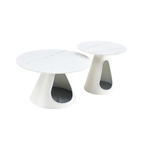 Product Name:set of 2 coffee round tables with a marble-look top and steel base with 2 cat beds multifunctional and stylish entable
