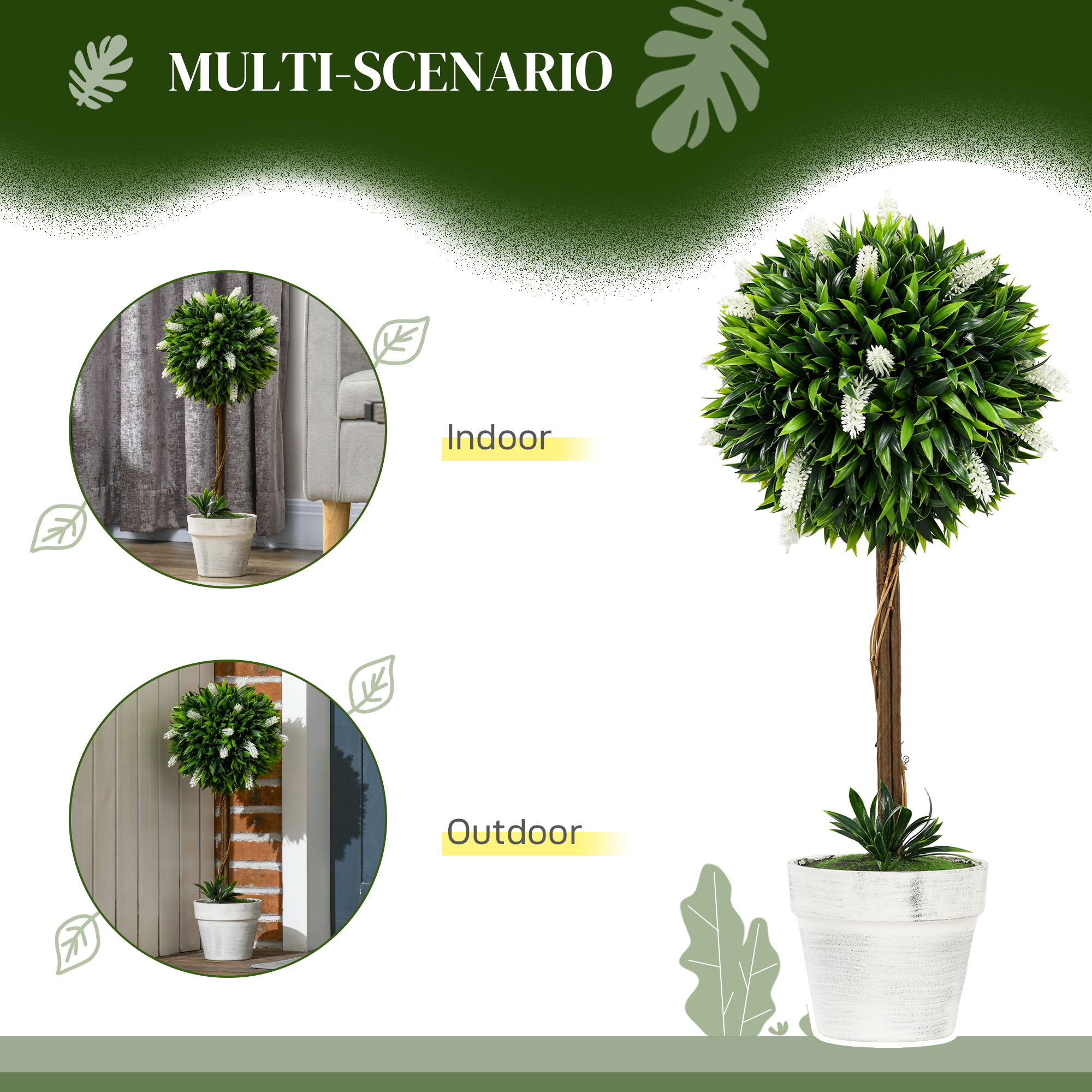 Want to grow green plants but can't keep them always green? Our faux plants are exactly what you need, it will stay green for many years without trimming and shaping. No watering, no fertilization, no worries when travelling. Realistic-looking leaves create a natural atmosphere for your roomand low maintenance is needed. Come pre-potted, those indoor plants are delivered ready to useand goes well with any kind of décor, great for indoor and outdoor spaces.