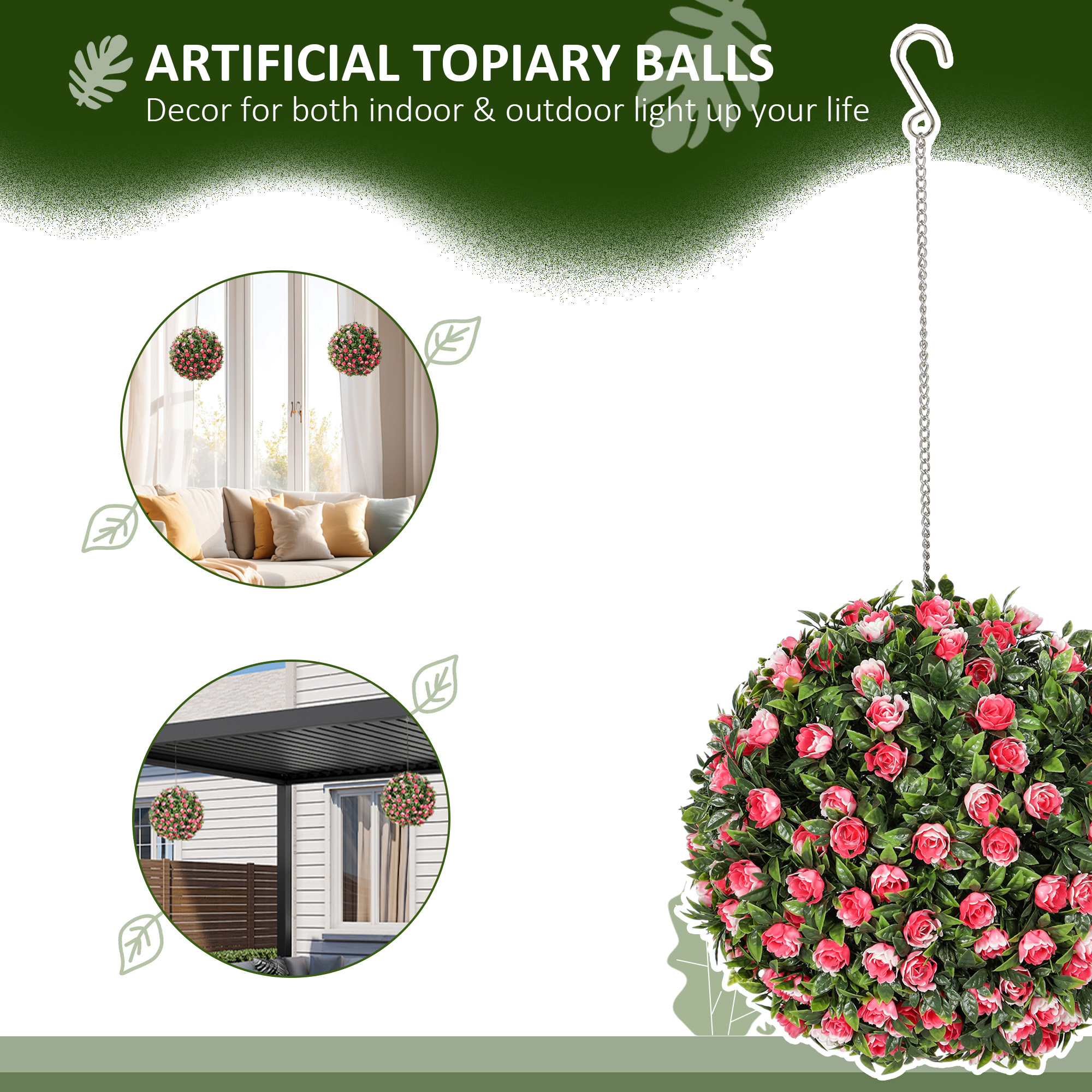 Brighten your space with 's set of two artificial topiary rose balls, a delightful addition to any décor. These faux plants, featuring 202 leaves and 202 flowers each, boast a natural texture for an ultra-realistic look. UV-protected and suitable for both indoors and outdoors, they promise vibrant charm with minimal upkeep. Great for lovers of artificial plants outdoor or indoor!