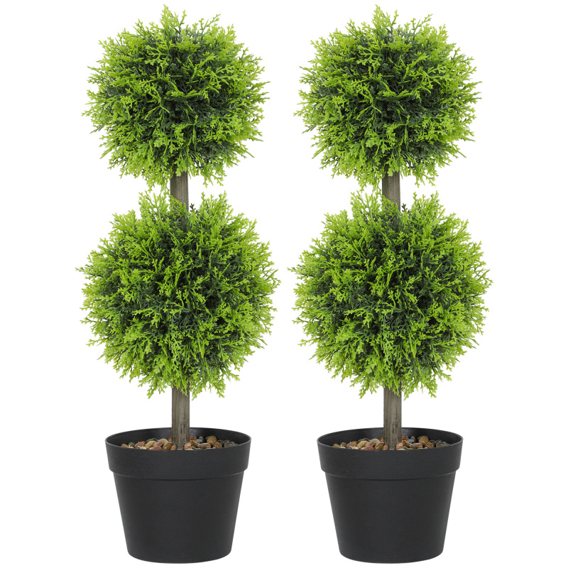 Set Of 2 Decorative Artificial Trees, Topiary Ball-shaped Boxwood Trees In Pot, Fake Plants For Home Indoor Outdoor Decor, 60cm, 2 Tree Balls