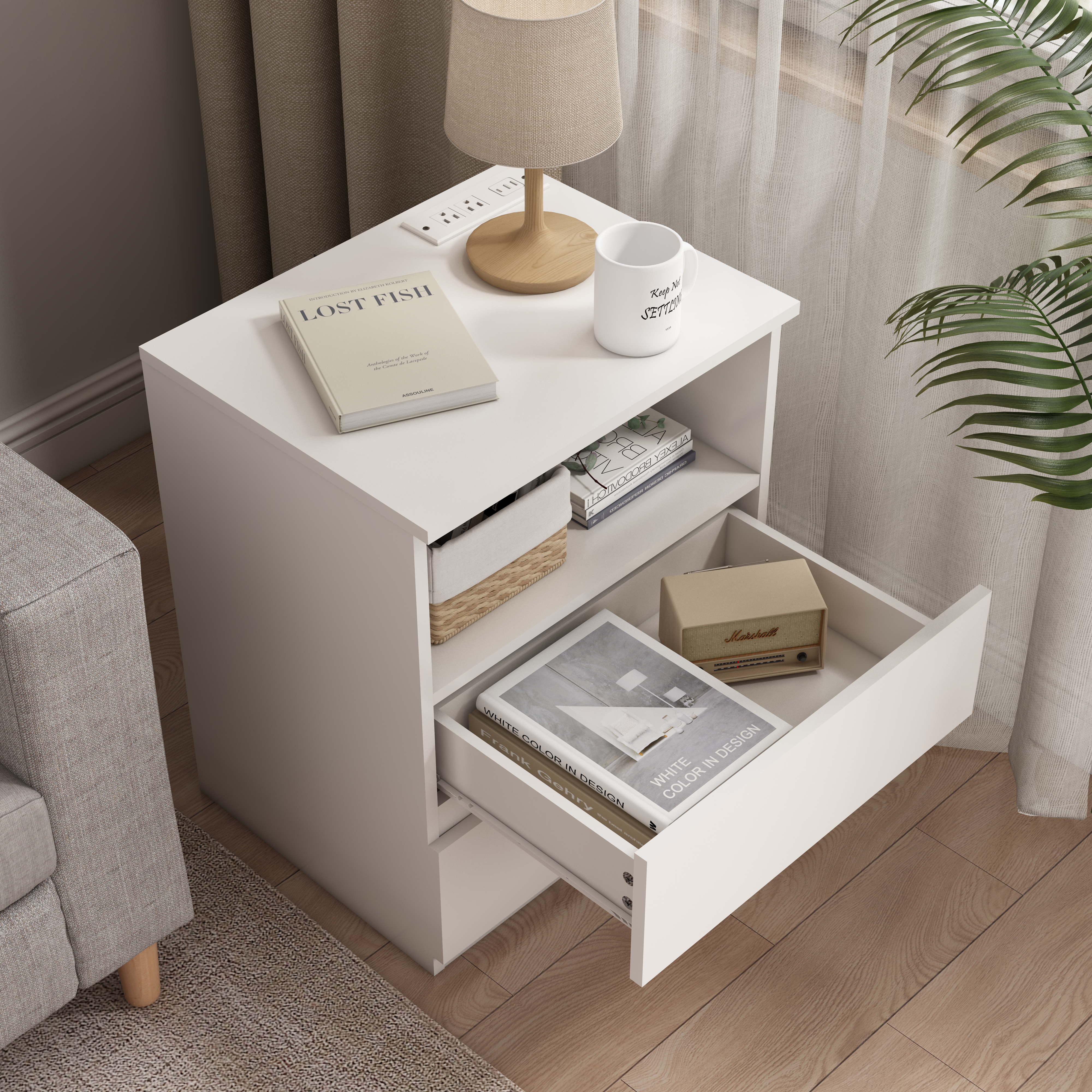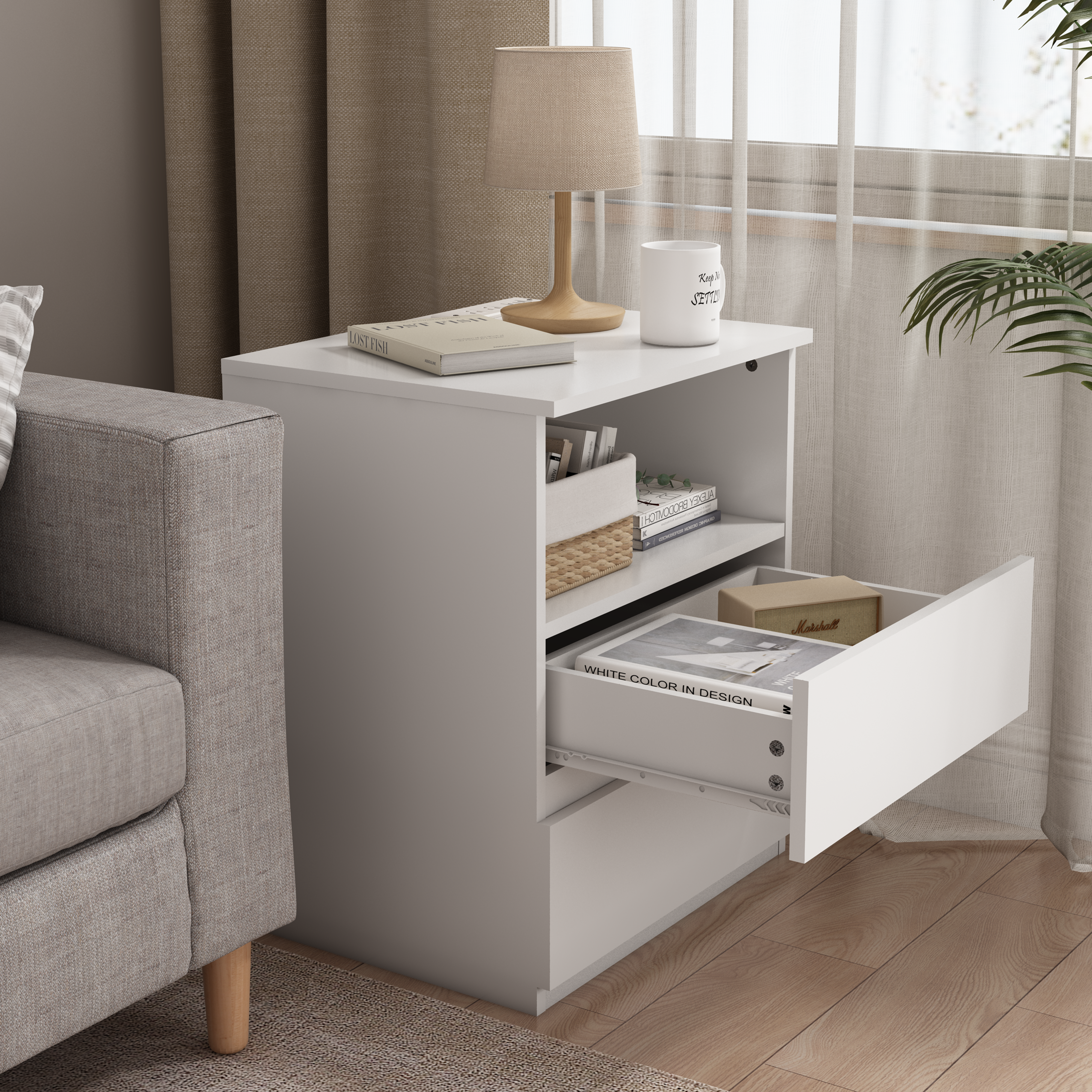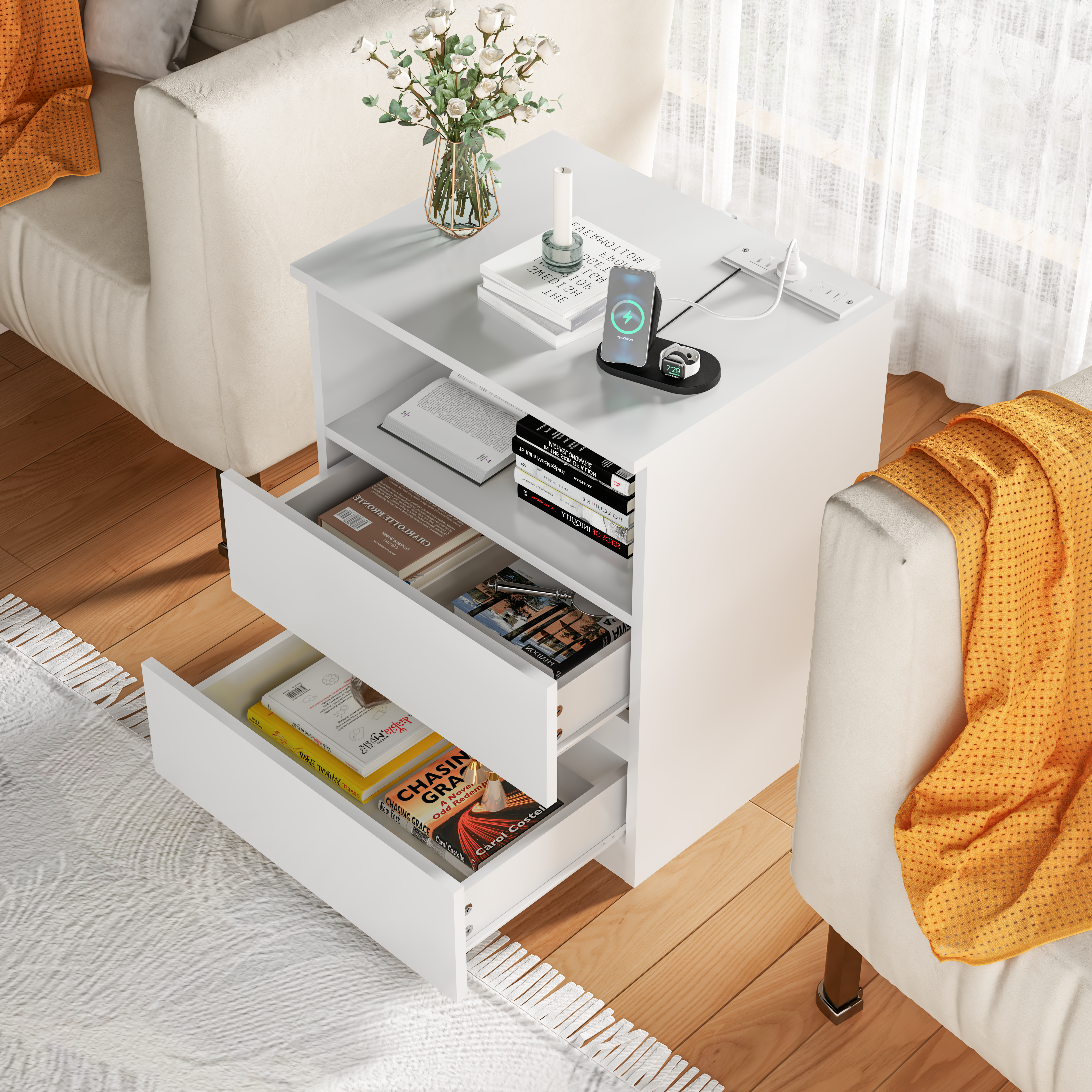 Product Name:(Set of 2) End Table with Fast USB C Charging Station, Sofa Side Table with 2 Drawers, Large Storage Modern Wood Storage Cabinet for Living Room,Bedroom,Office, White