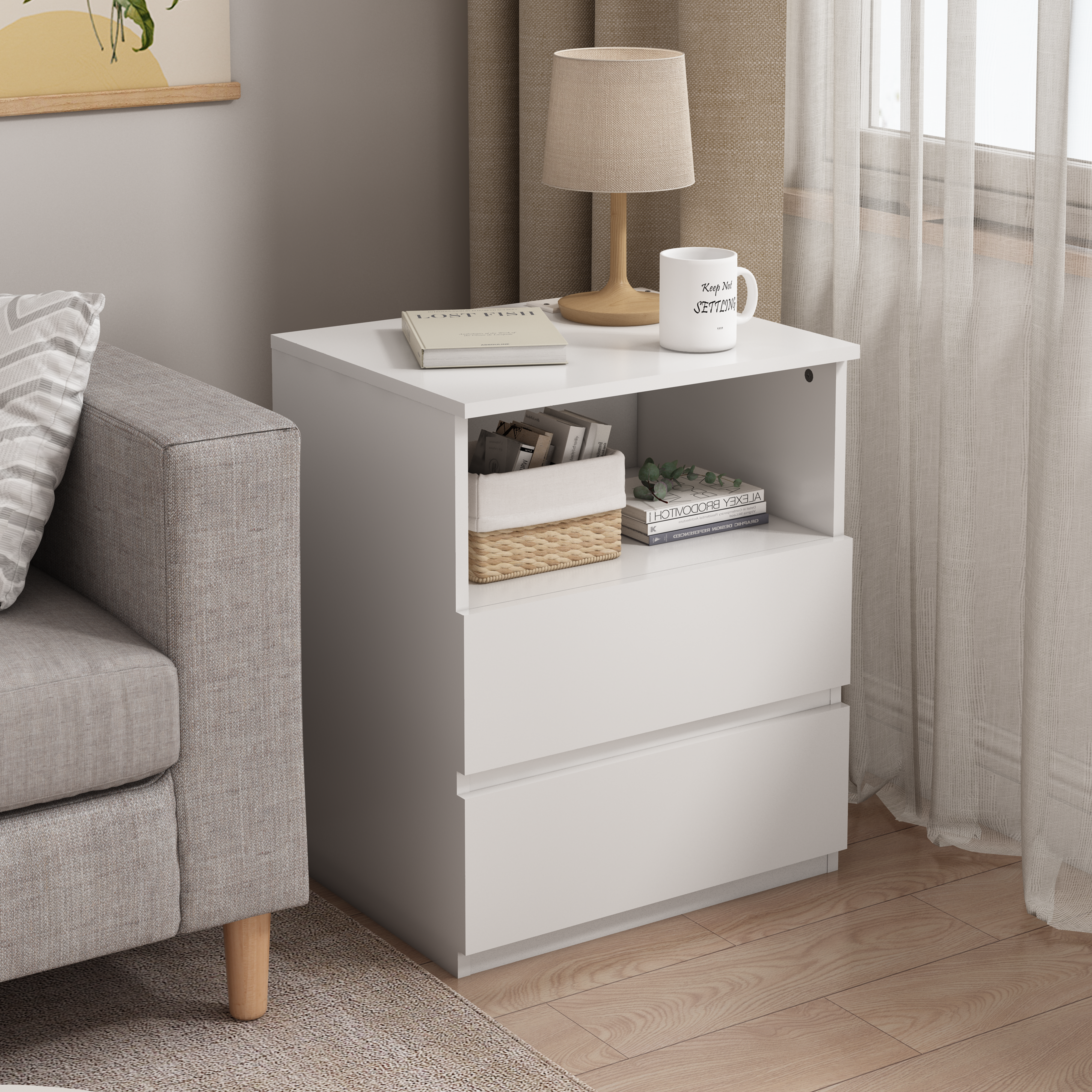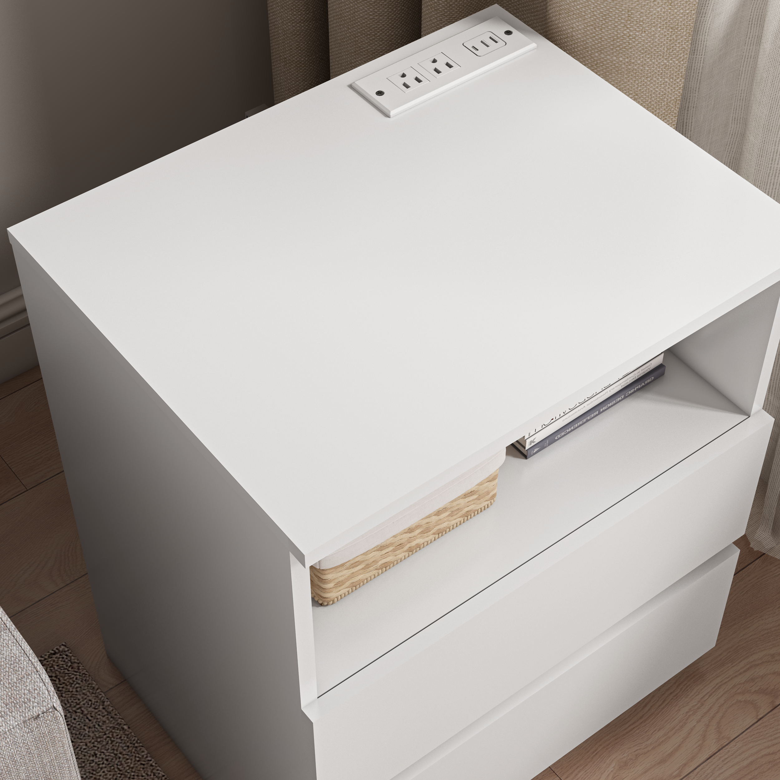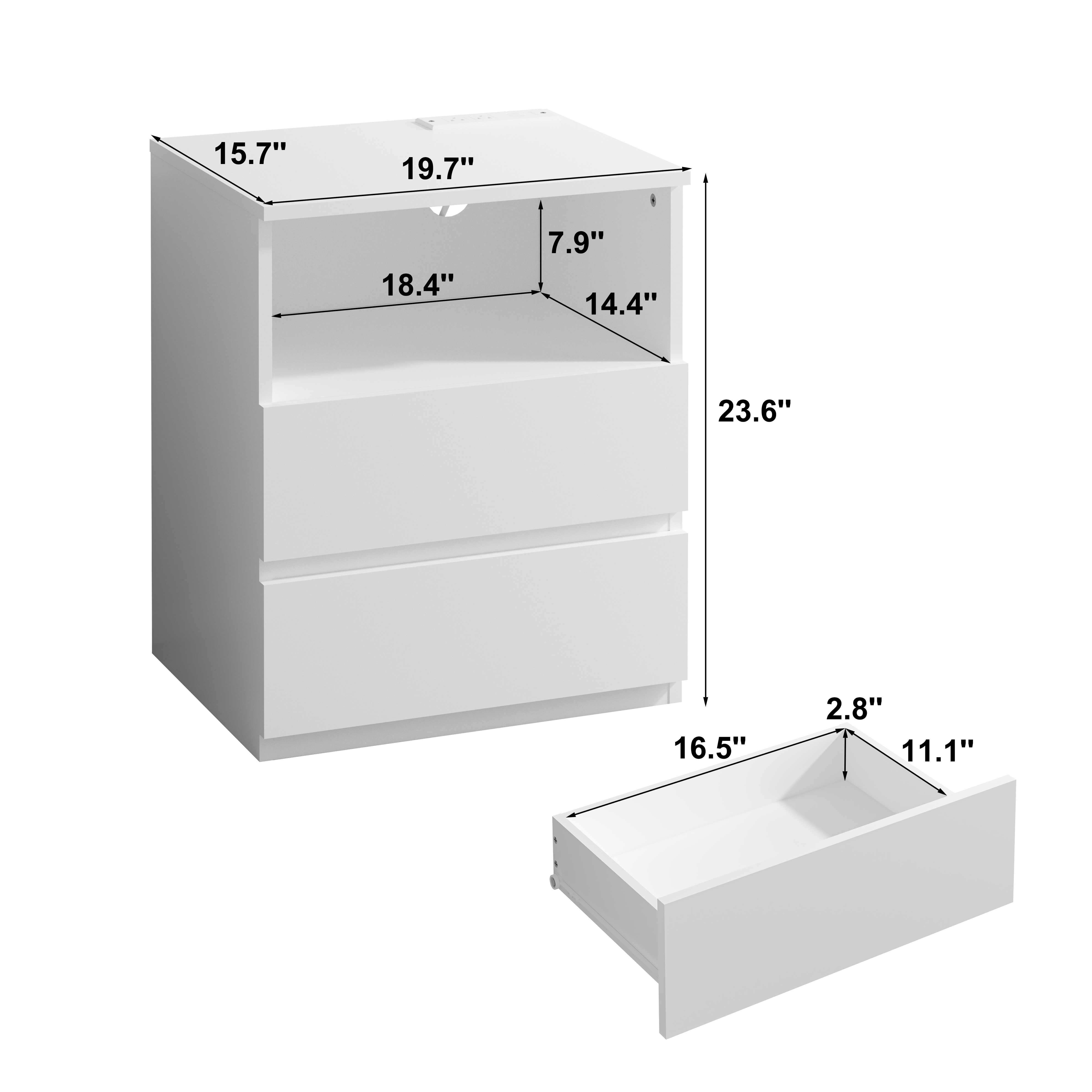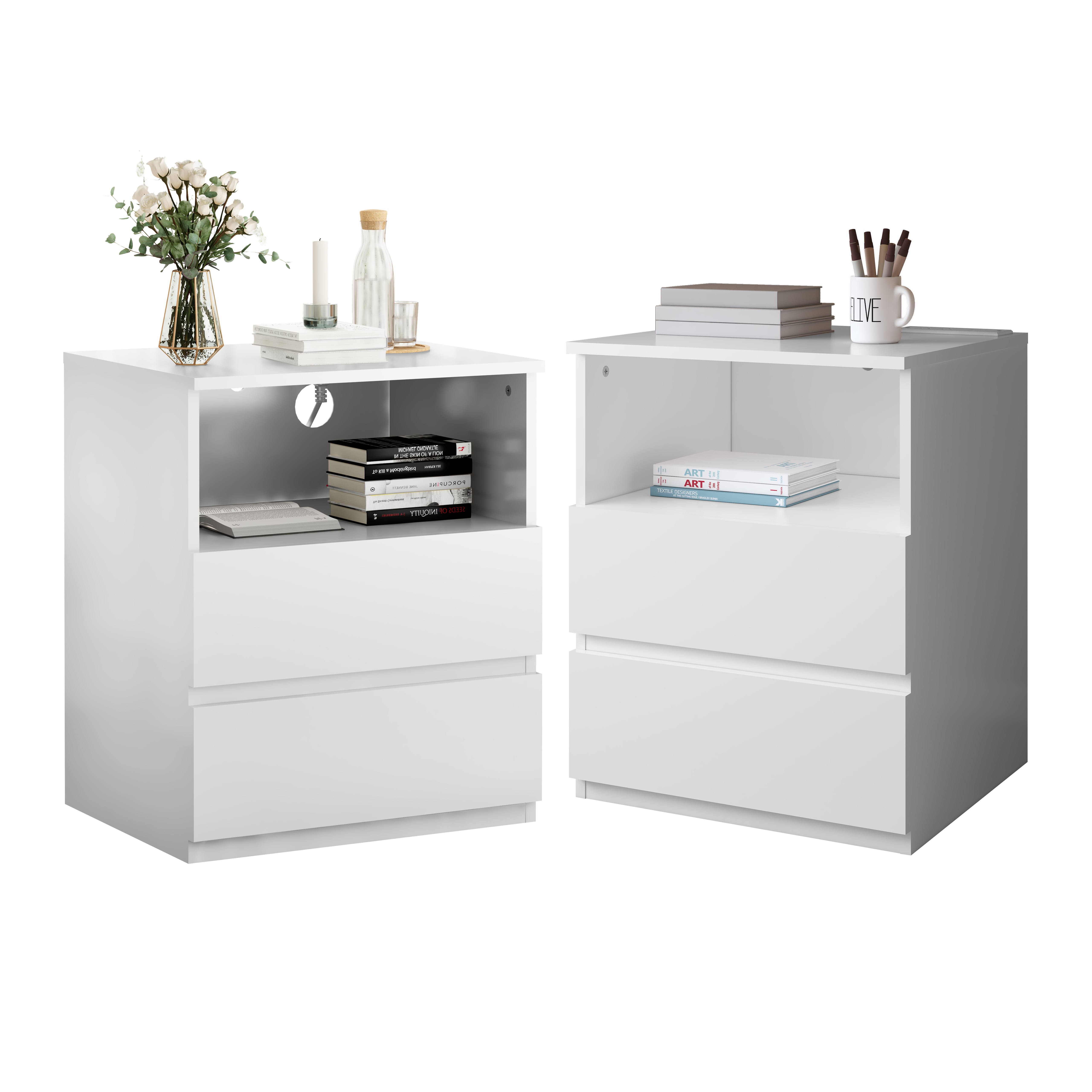 Product Name:(Set of 2) End Table with Fast USB C Charging Station, Sofa Side Table with 2 Drawers, Large Storage Modern Wood Storage Cabinet for Living Room,Bedroom,Office, White