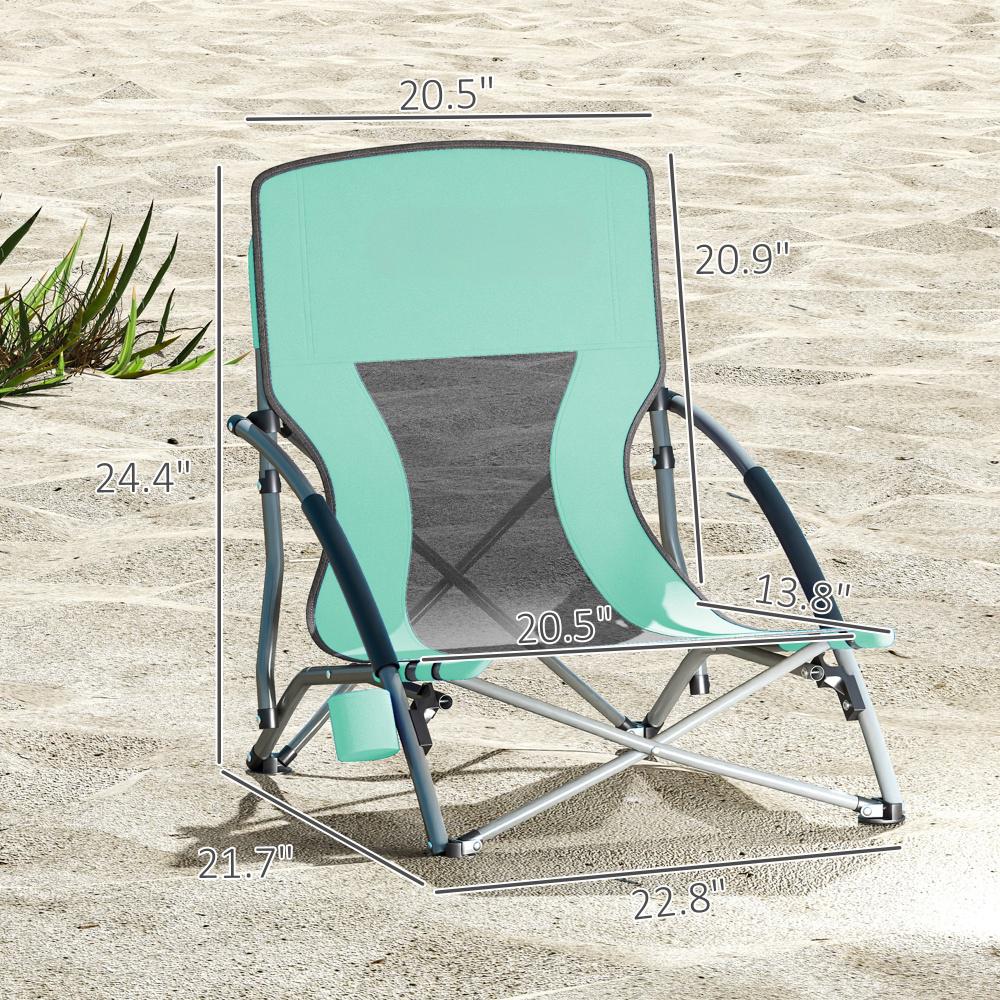 Set Of 2 Folding Beach Chairs With Mesh Back, Carry Bag And Cup Holder For Outdoor Camping Lawn Sports Picnic Turquoise