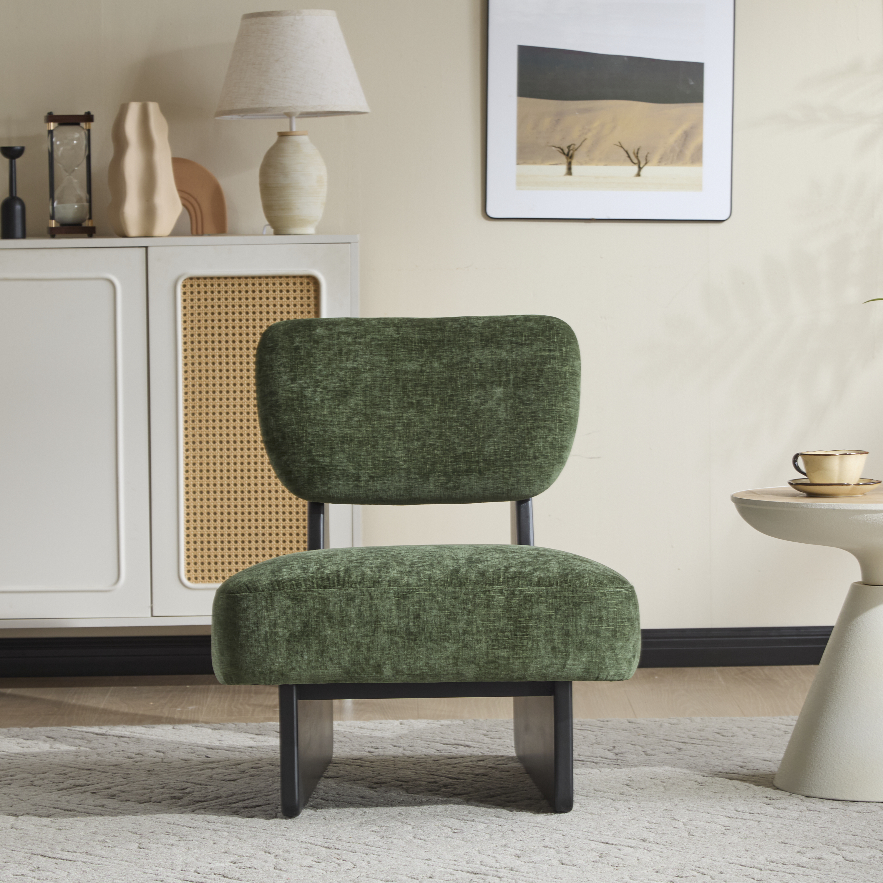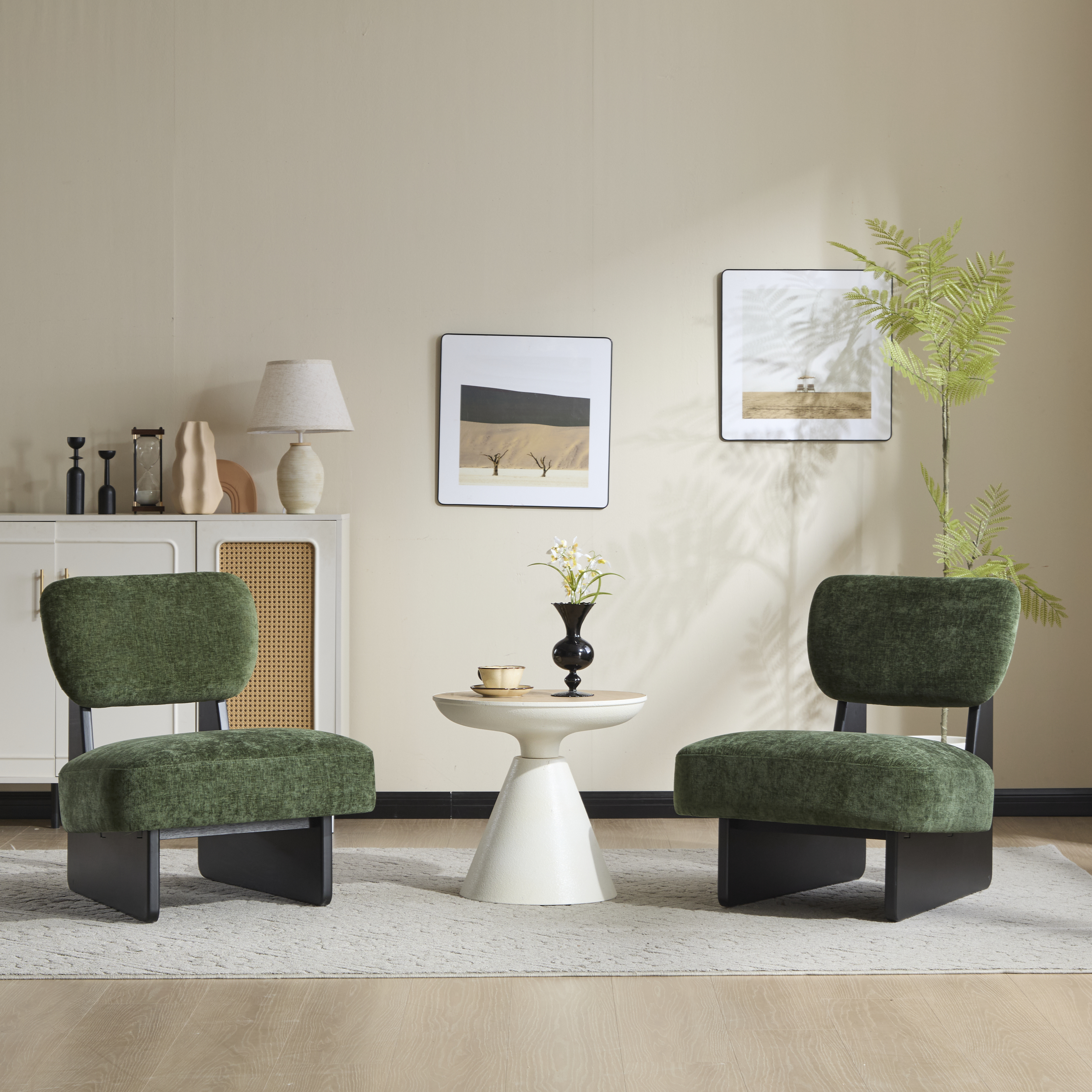 Product Name:[Set of 2] Modern Green Lounge Chair with Polyester Upholstery, Sturdy Wood Base With Black Finish, Minimalist and Stylish Accent Seating for Living Room, Bedroom, or Office