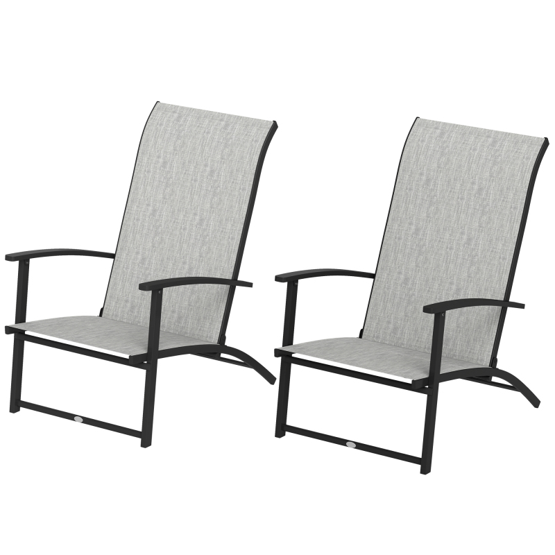 Set Of 2 Outdoor Dining Chairs With High Back, Armrests, Folding Patio Chairs For Patio, Lawn, Camping, Gray