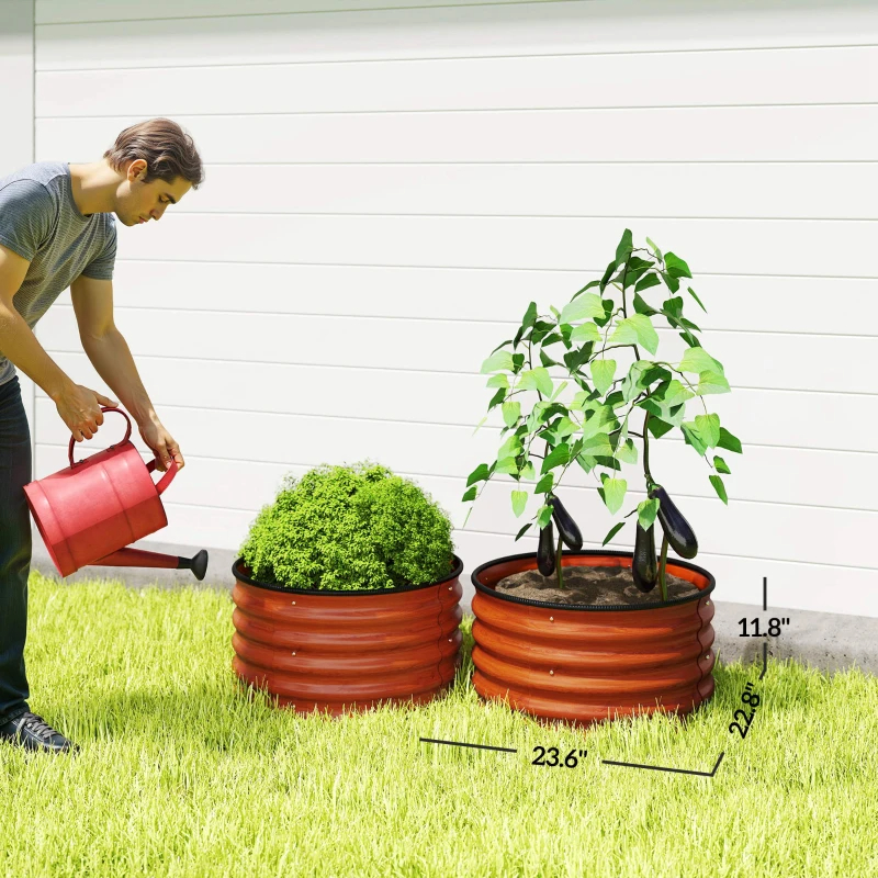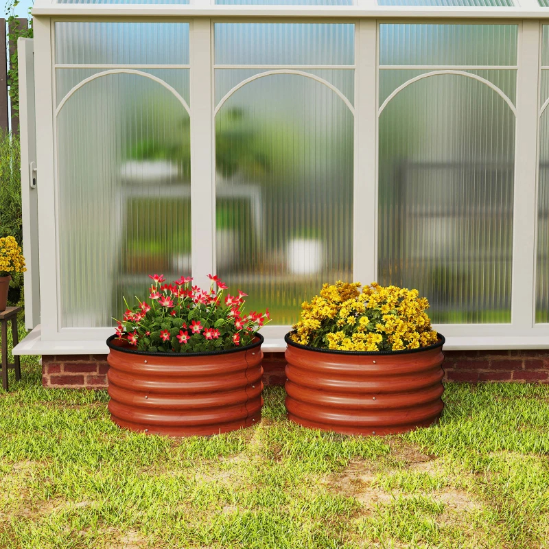 Set Of 2 Raised Garden Bed, Metal Planter Box With Safety Edging, Easy-to-assemble Stock Tank, Dark Brown