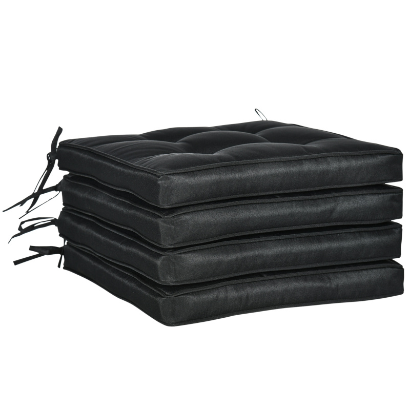 Set Of 4 Garden Seat Cushion With Ties, 42 X 42cm Replacement Dining Chair Seat Pad, Black