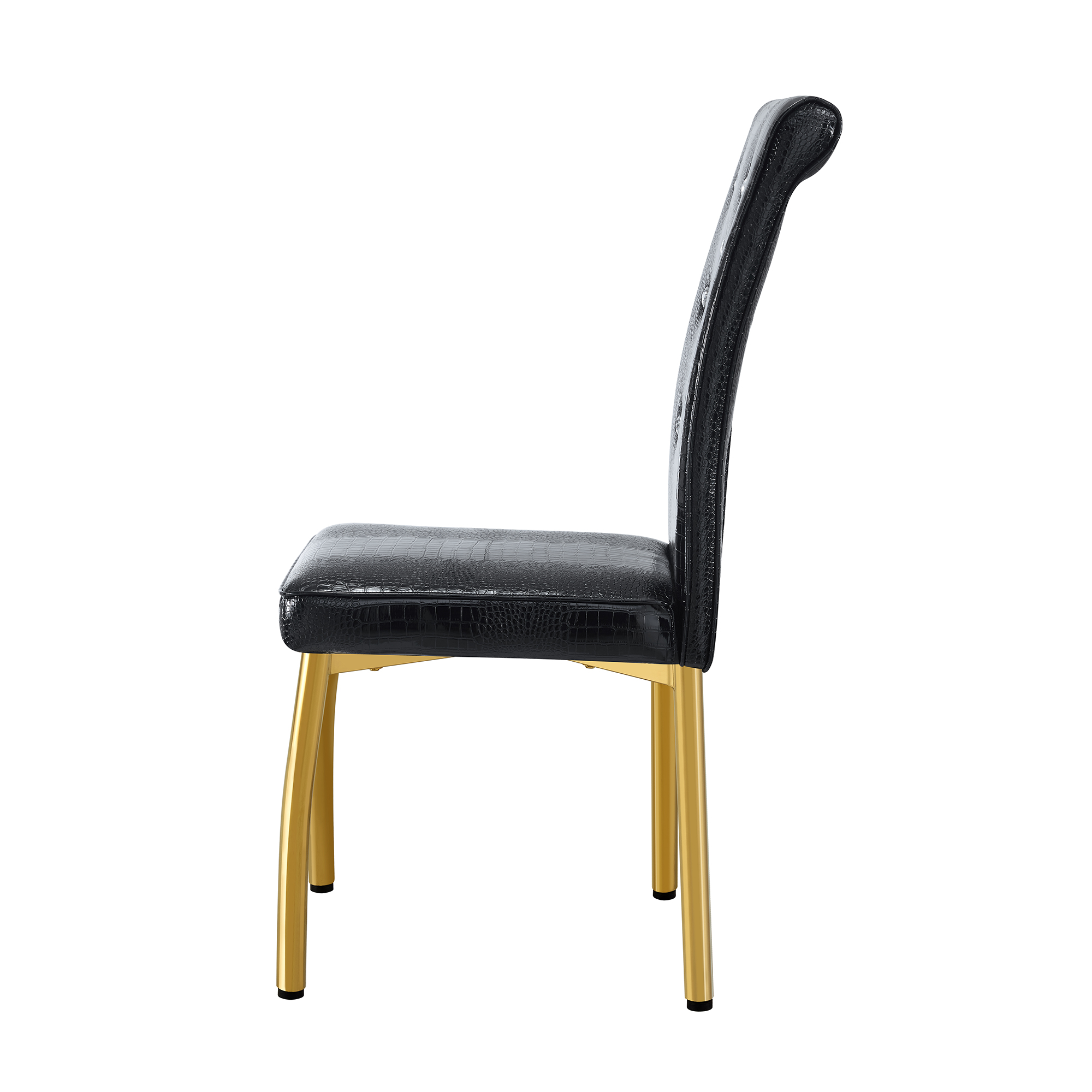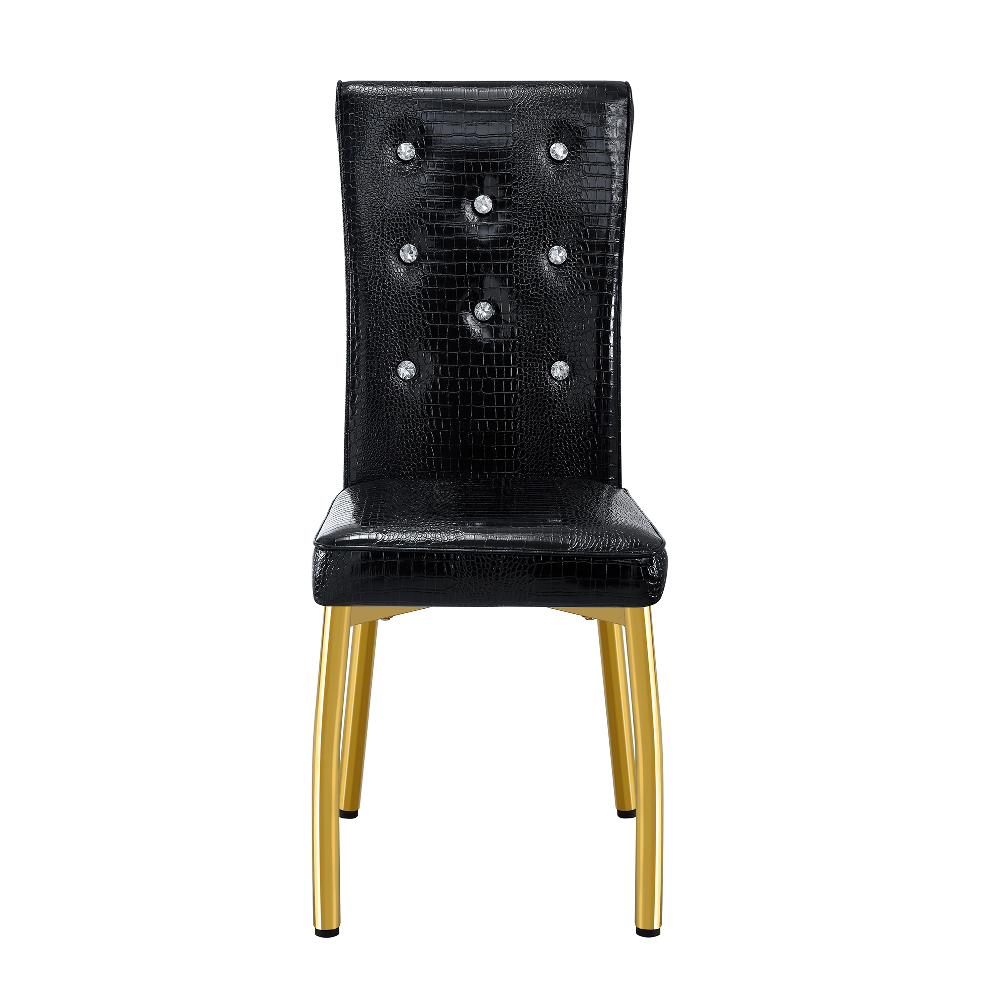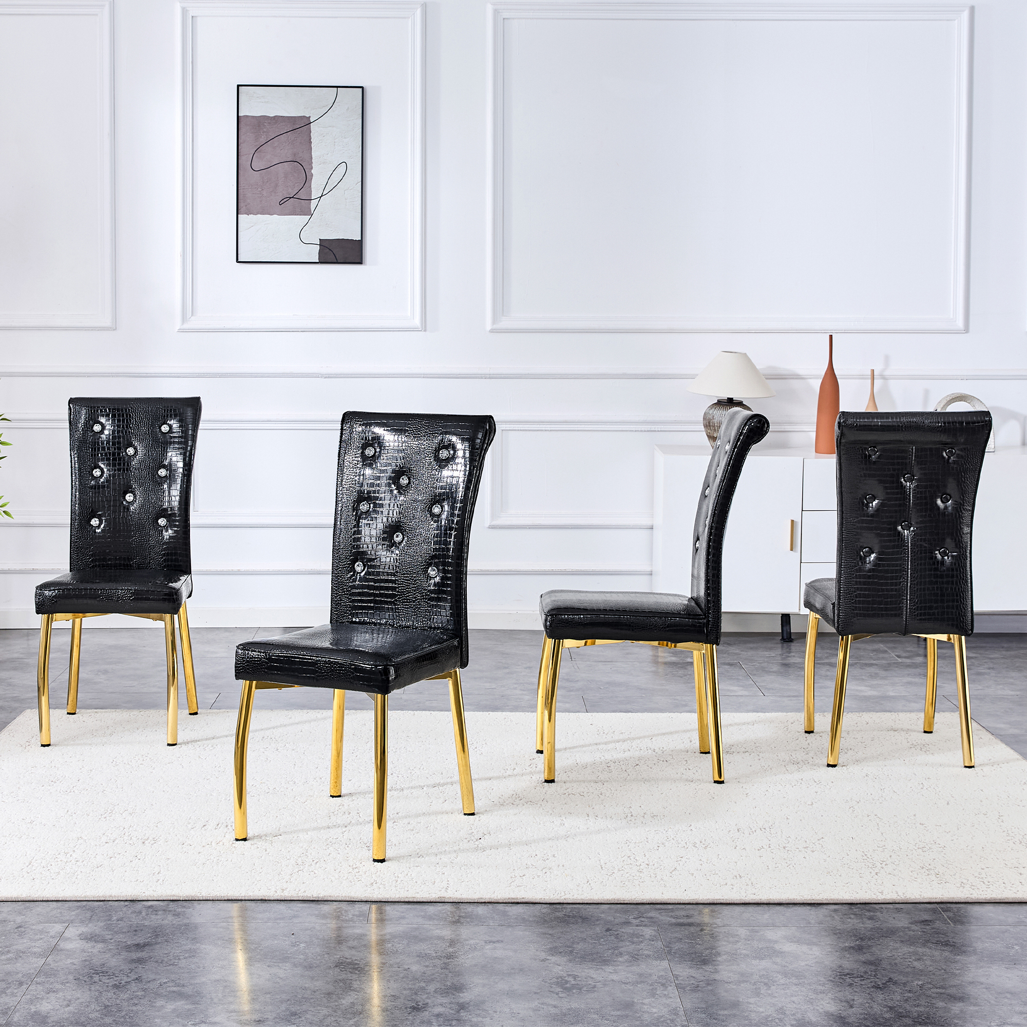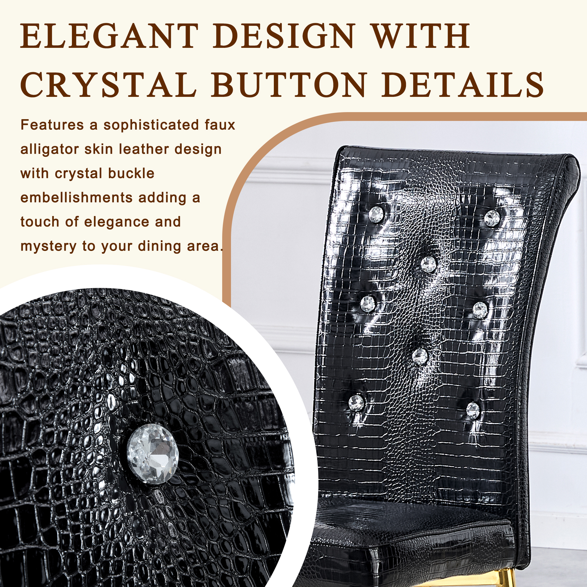 Product Name:Set of 4,Retro alligator skin Upholstered dining chairs,with Crystal buckle design and Faux Leather design,a touch of elegance and mystery to the dining area.Gold plated metal feet