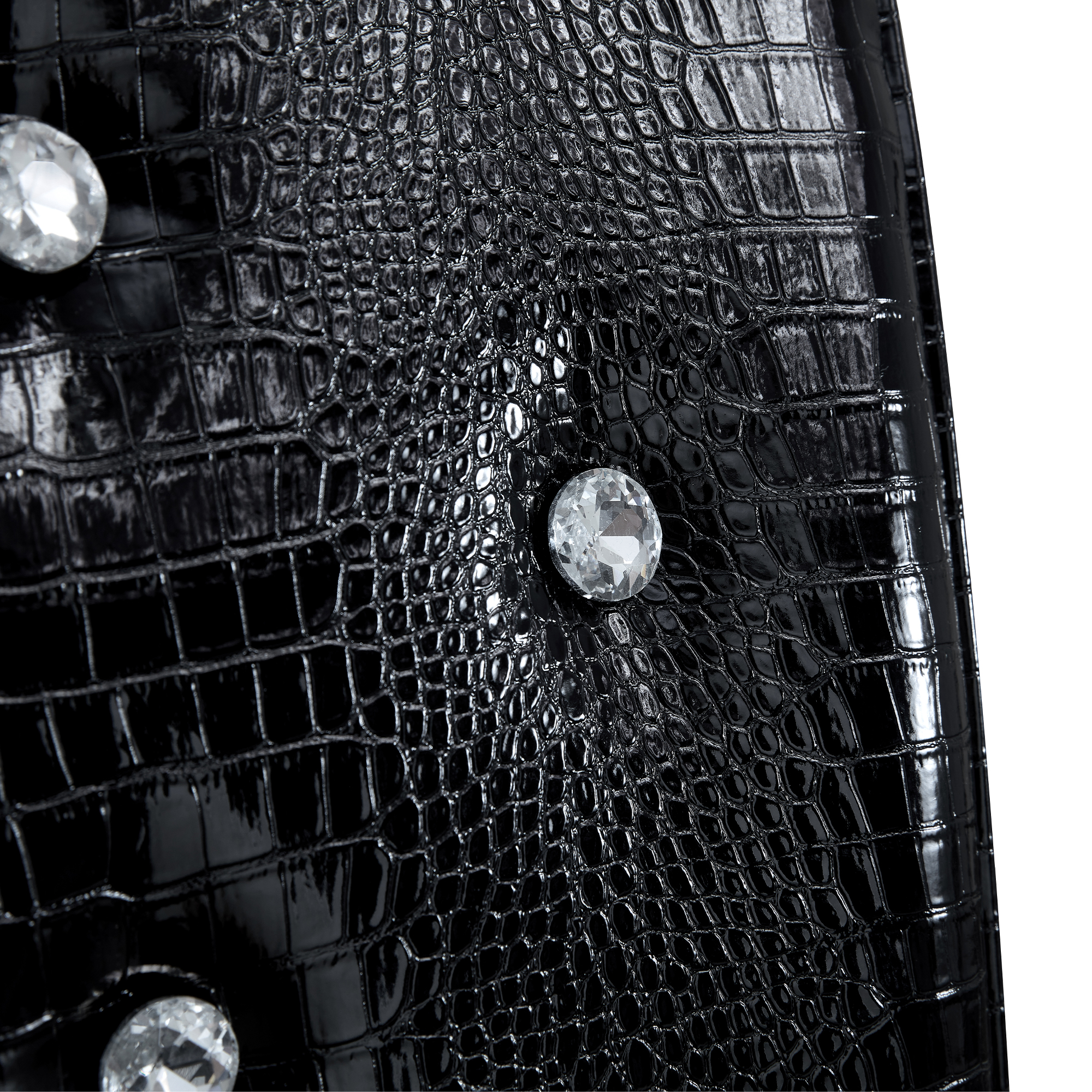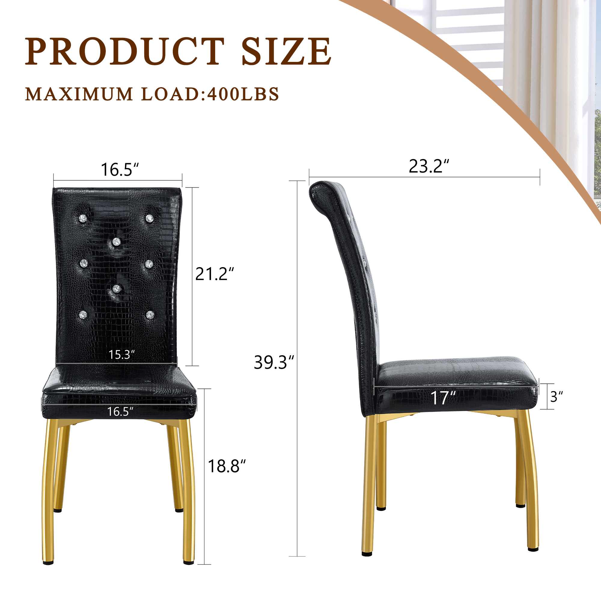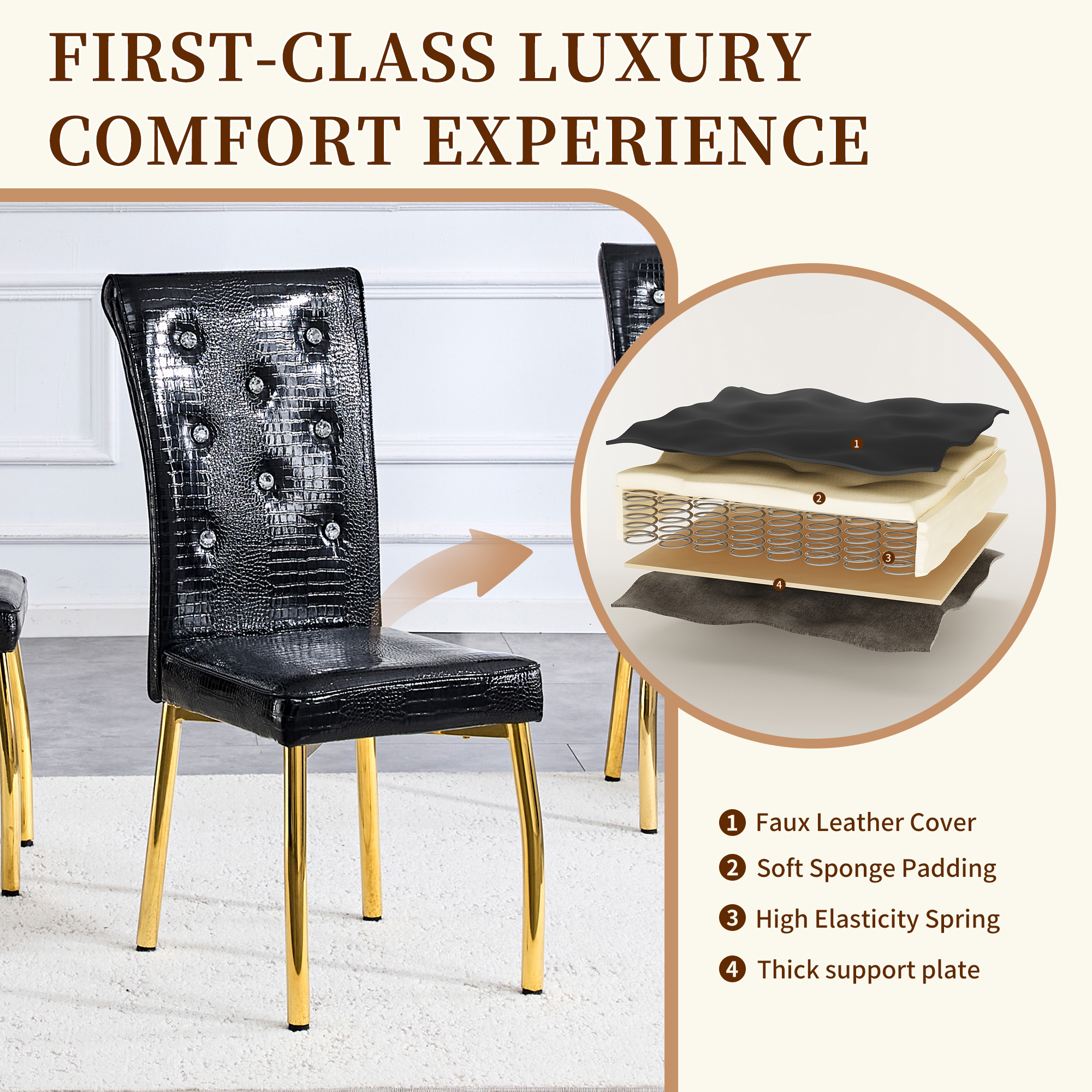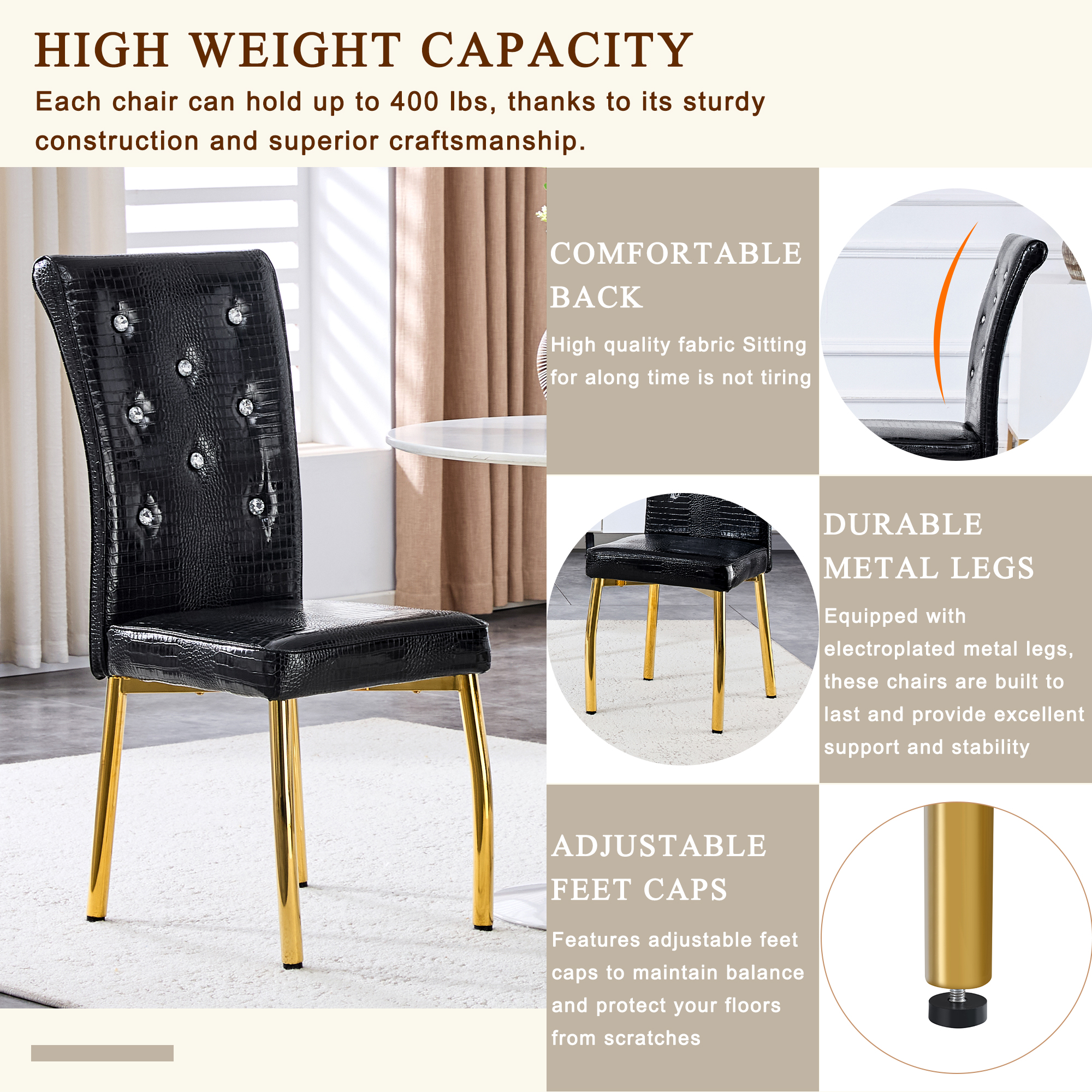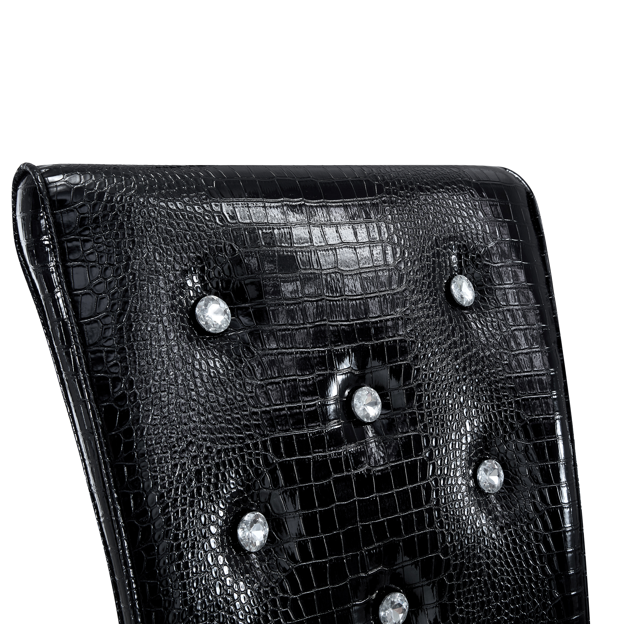 Product Name:Set of 4,Retro alligator skin Upholstered dining chairs,with Crystal buckle design and Faux Leather design,a touch of elegance and mystery to the dining area.Gold plated metal feet