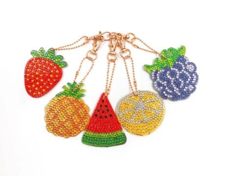 Set Of 5Colorfu Fruit Key Chains Diamond Painting