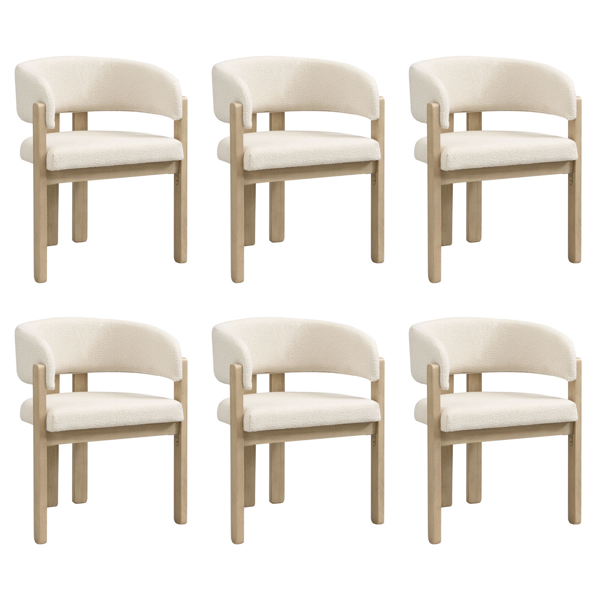 Product Name:Set of 6, solid wood chairs, dining chairs, suitable for homes, restaurants, living rooms, and cafes, Boucle, Natural color