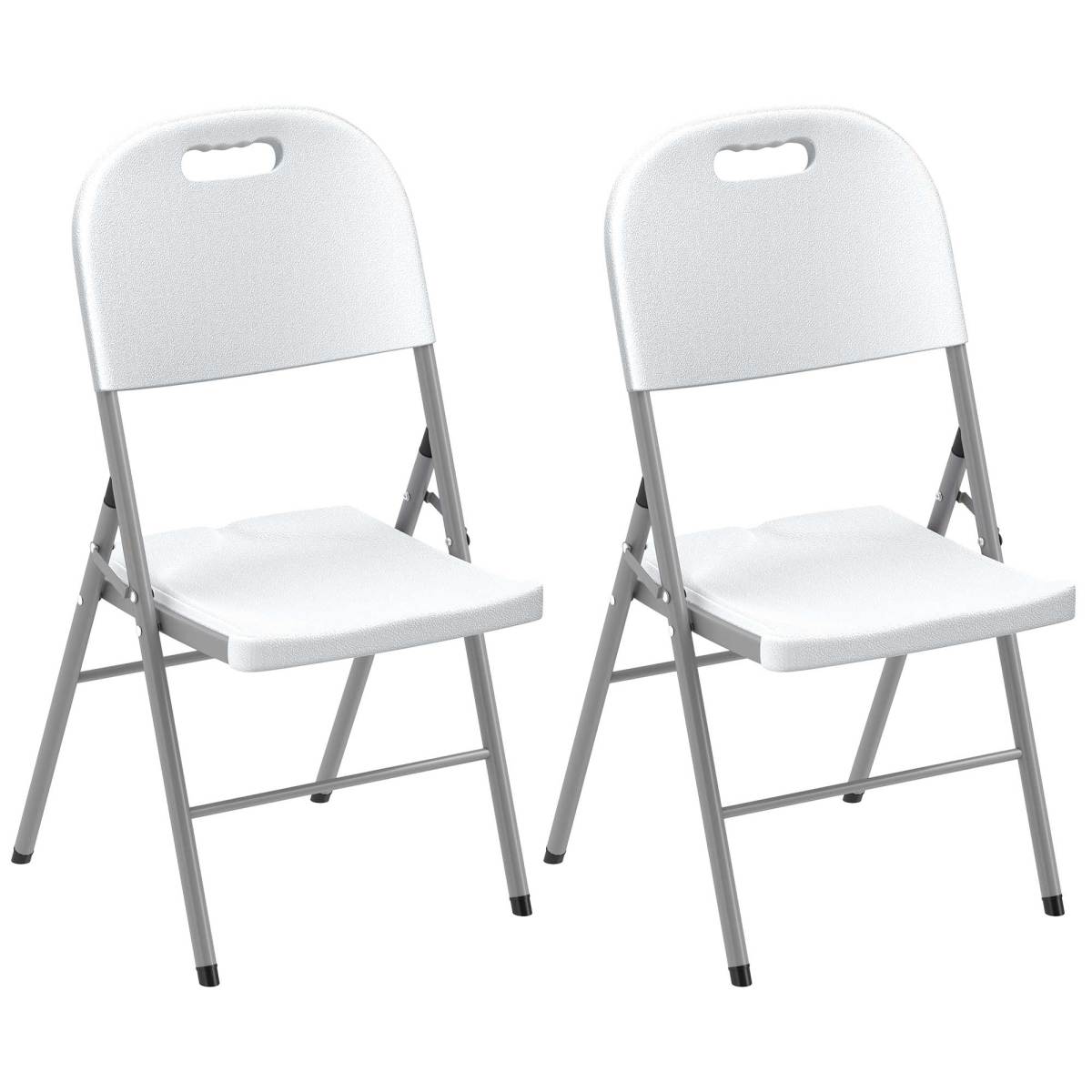 This set of two chairs come in an easy folding design - easy to carry, and store away where you want. The powder coated steel frames for a strong core, fitted with plastic seats for a solid place to sit. Complete with cut-out handles on the top to pick up and carry easily.