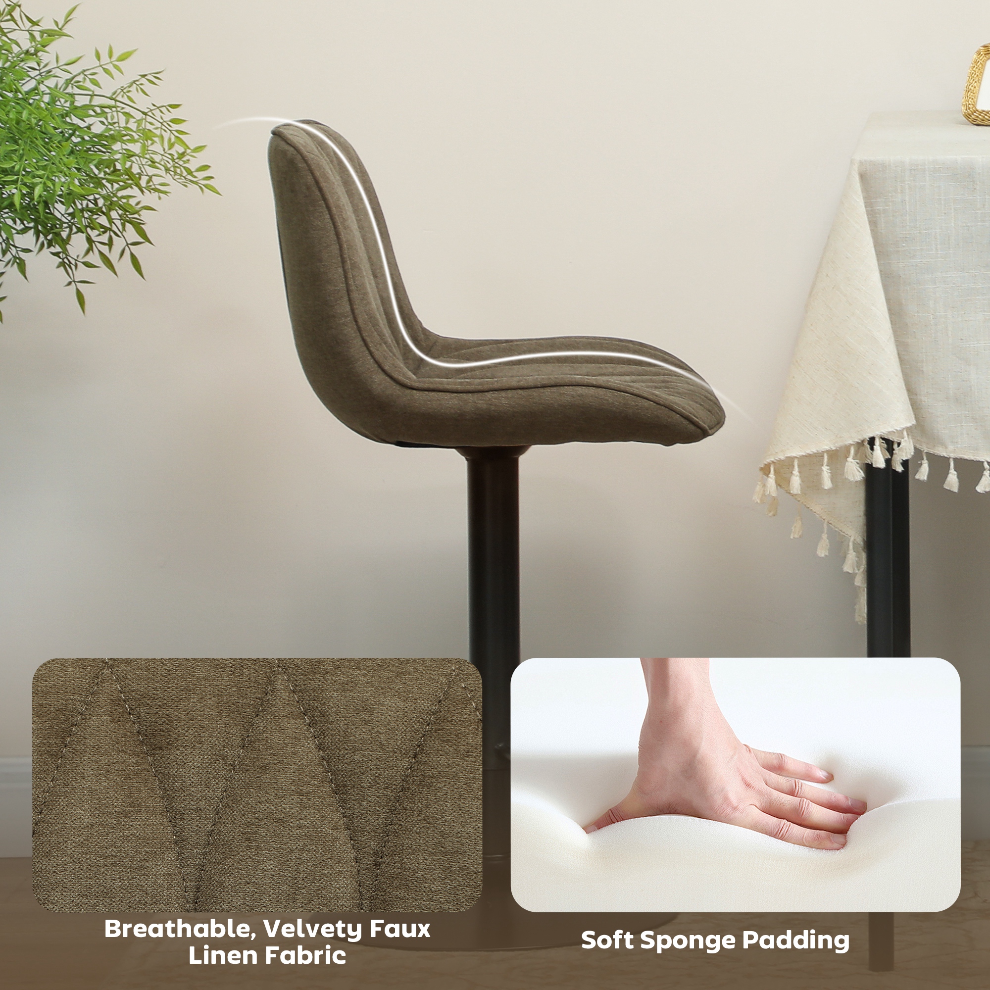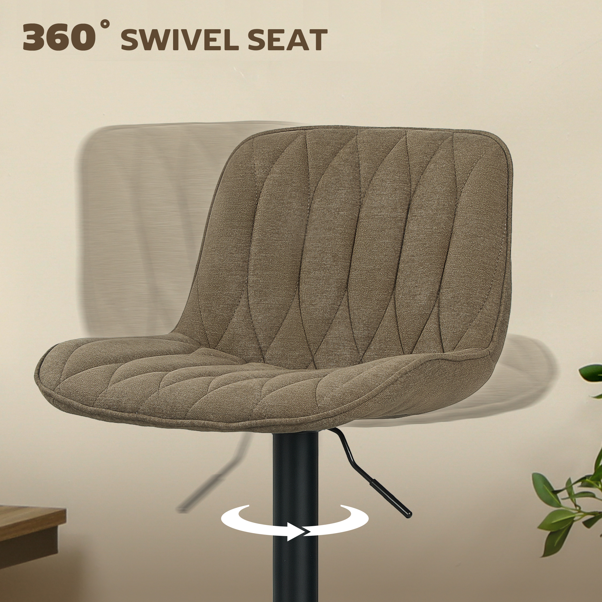 For every raised surface, these two bar stools are the ideal fit. Adjust the seat height between 60-80 cm, to match kitchen islands, countertops and other. The powder coated steel frame ensures a strong core; the 360° swivel motion moves with your body. The padded seats keep you comfortable all day long, finished with supportive high back and smooth linen-look upholstery.