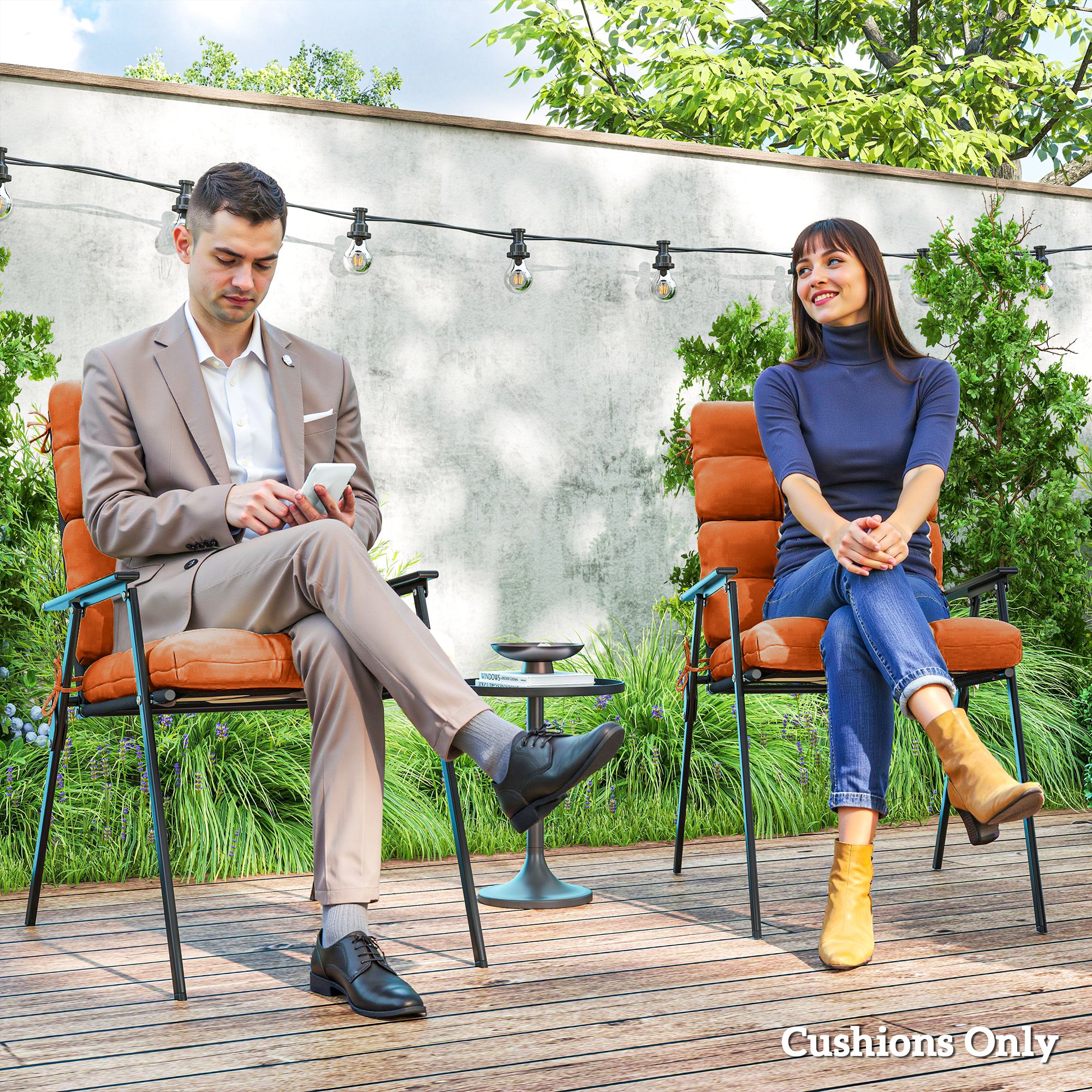 Enhance your outdoor seating experience with this set of two lawn chair cushions. Comes with two combined seat and back cushions. Each cushion has a thick filling for plenty of comfort and relaxation. Comfort and style in your garden the easy way with our outdoor seat pads.