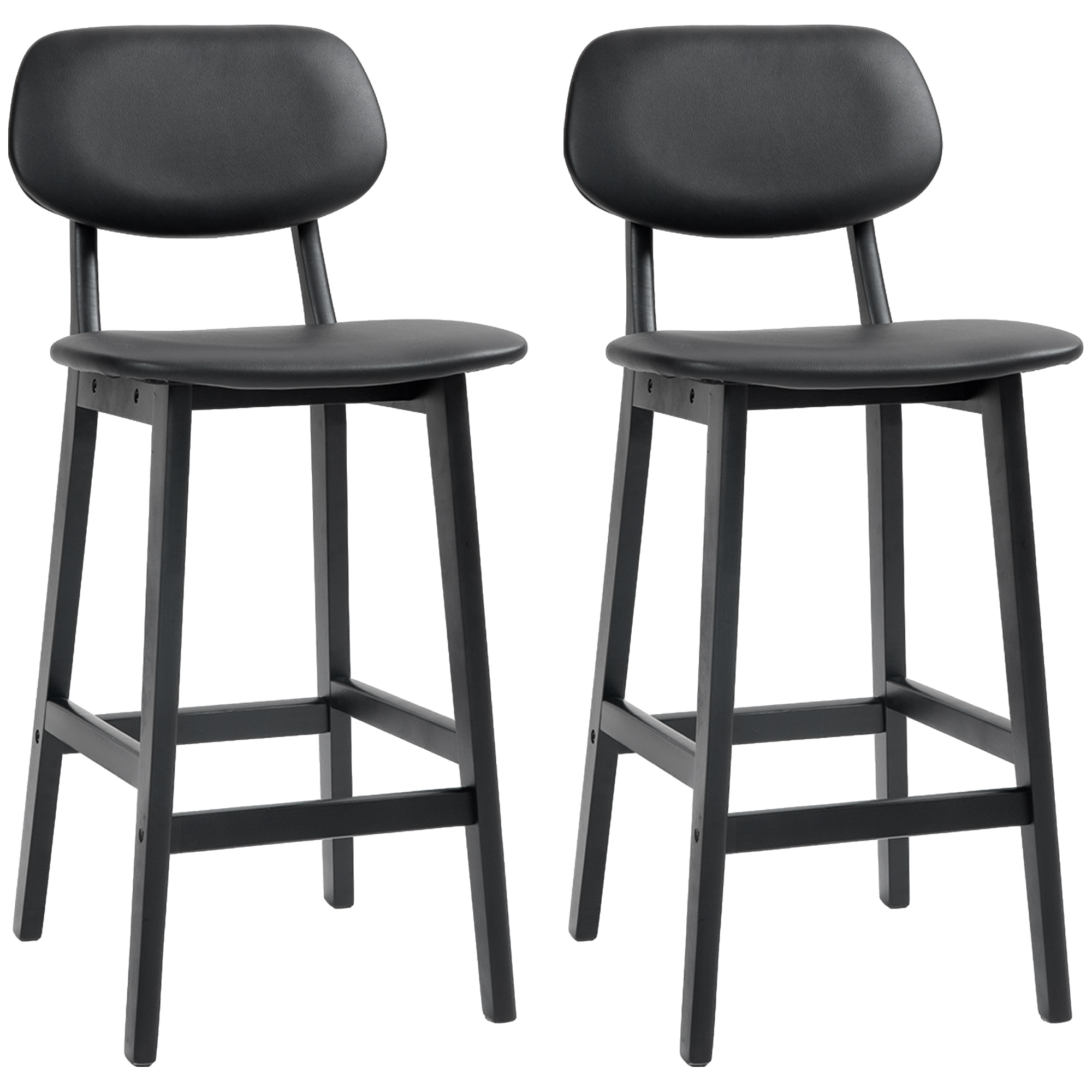 Set Of Two Wooden Classic Bar Stools, With Faux Leather Seats - Black