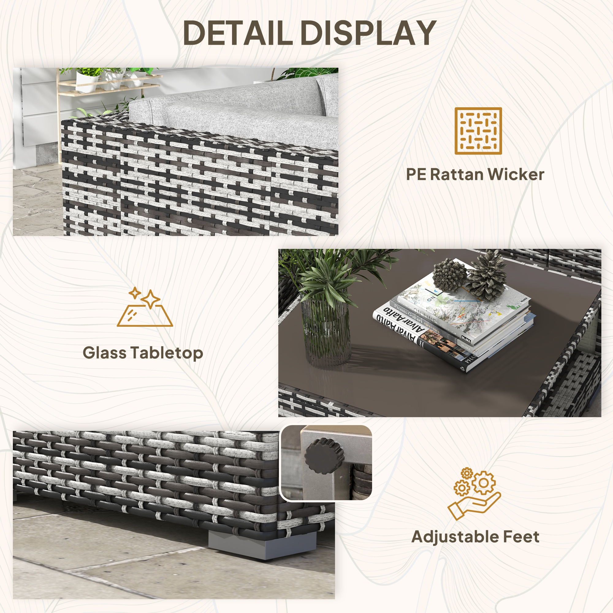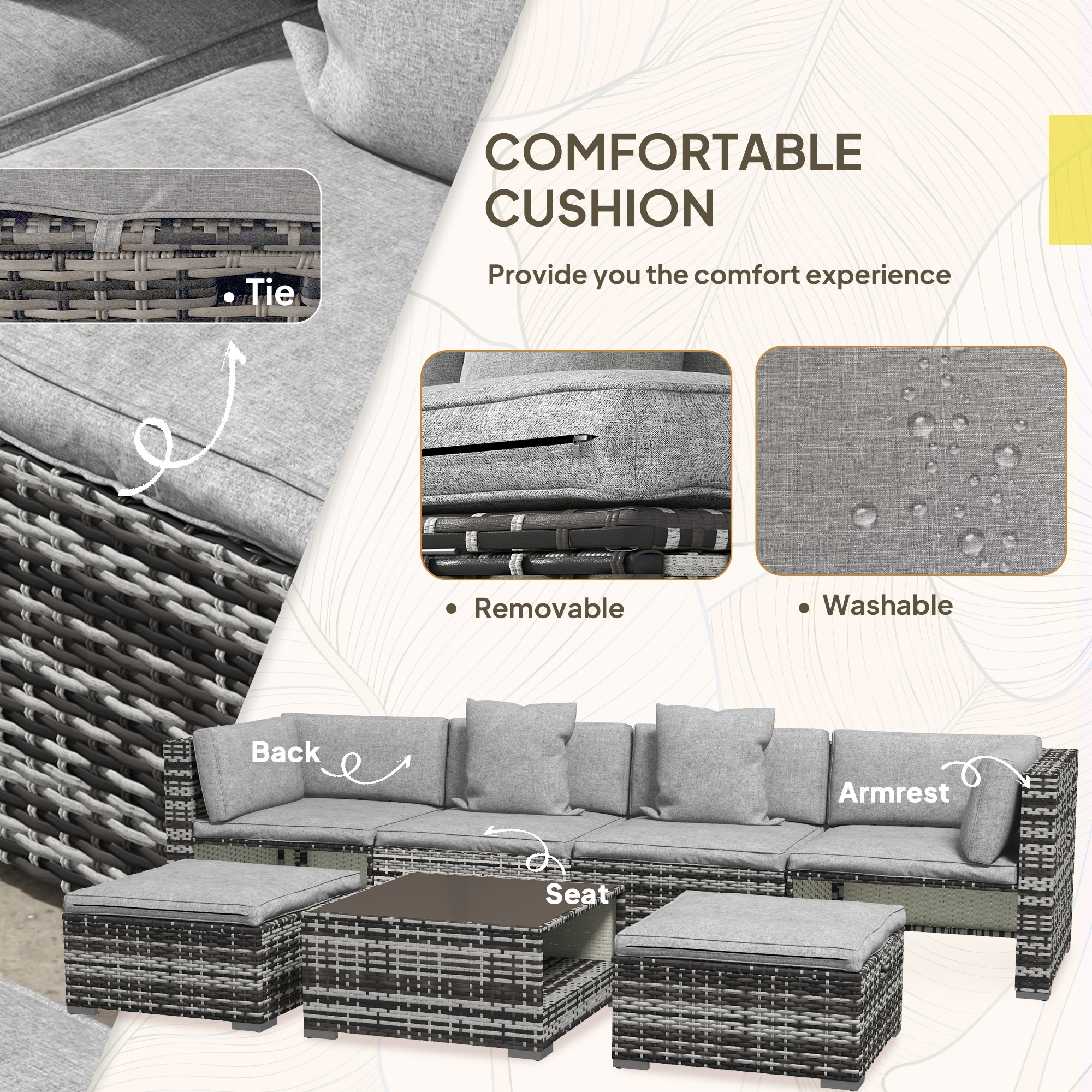 Seven-Piece Rattan Patio Furniture Set, With Cushions - Grey