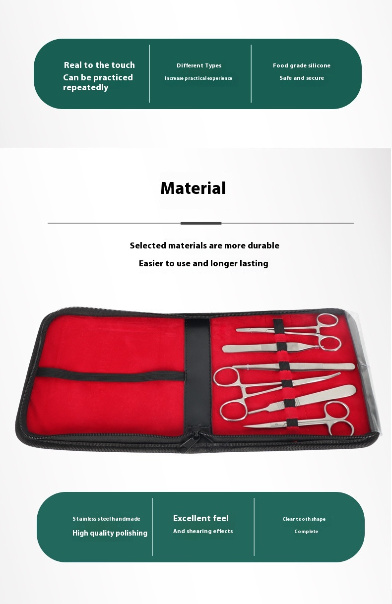 Specifications: 19-piece set, 18-piece set, simulated skin training module, 6-piece set of tools
