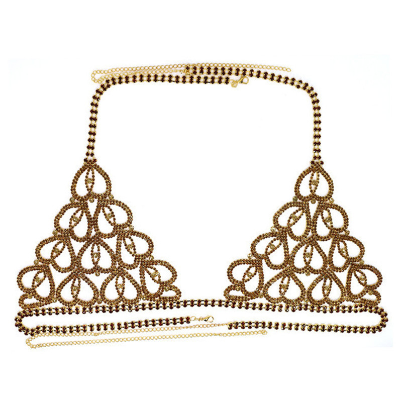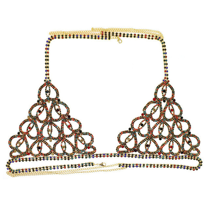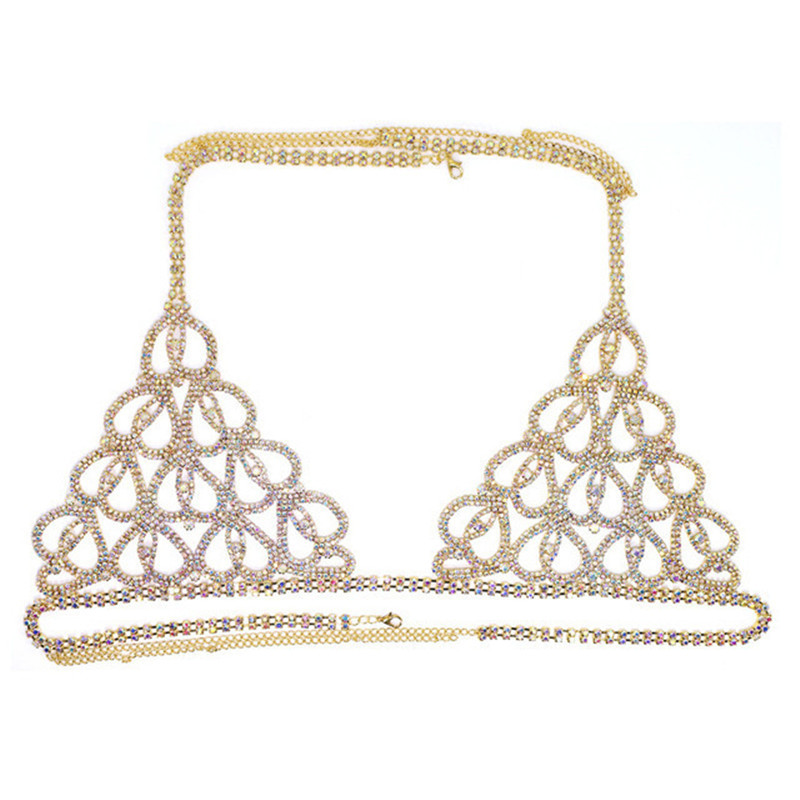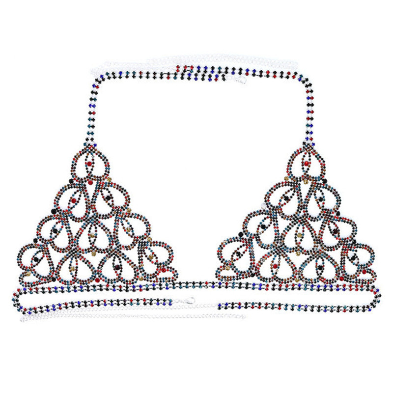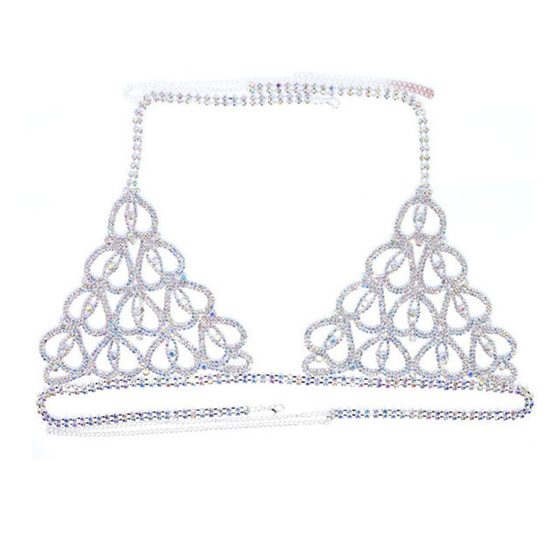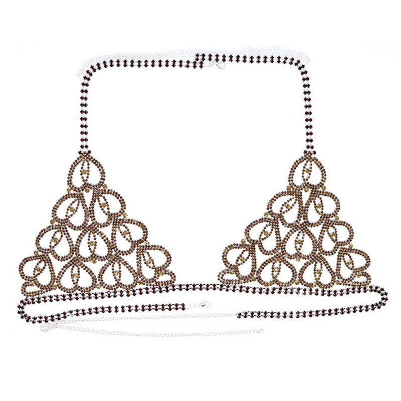 Sexy Bikini With Heart-shaped Rhinestone Claw Chain On Body Chain