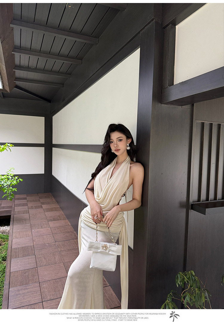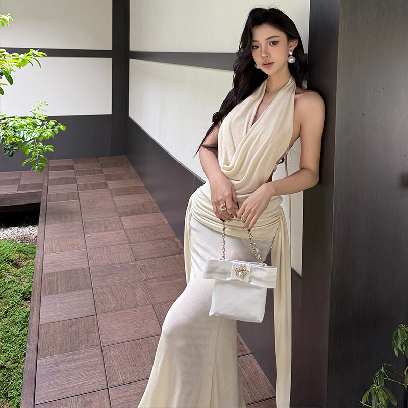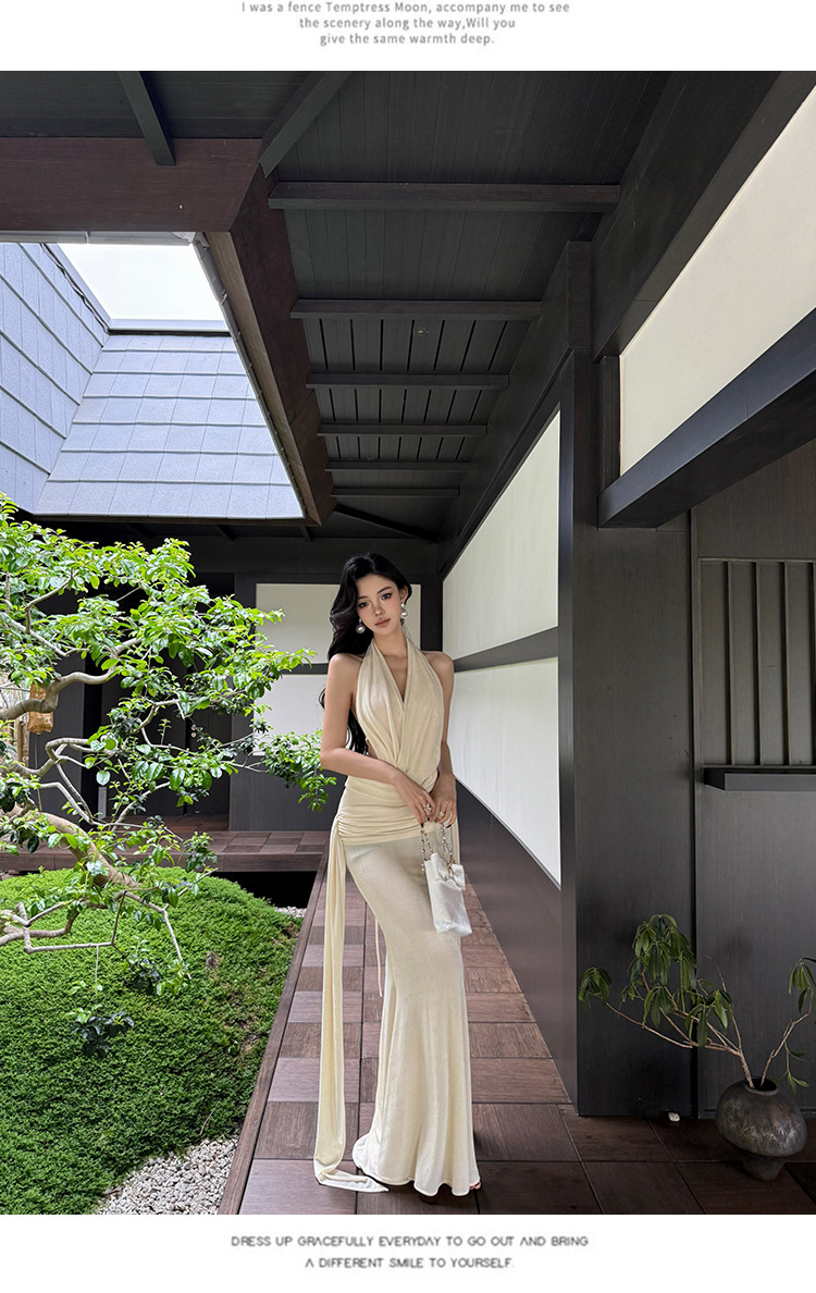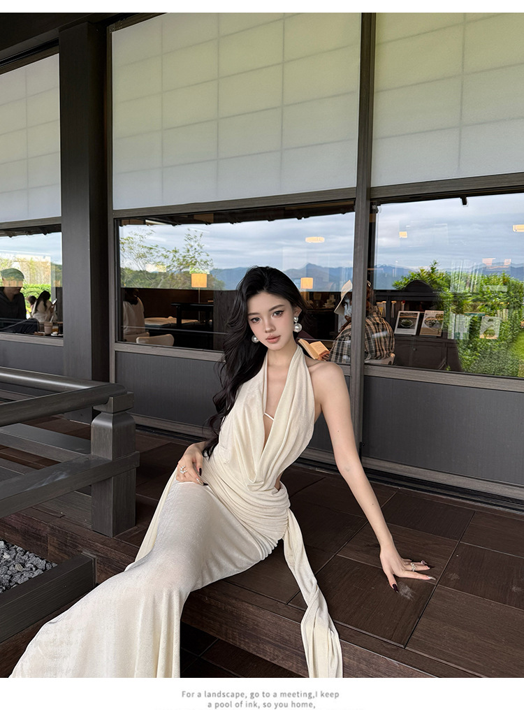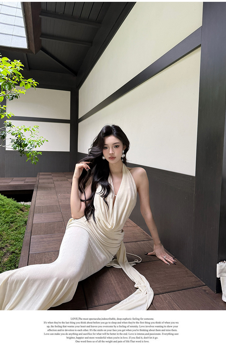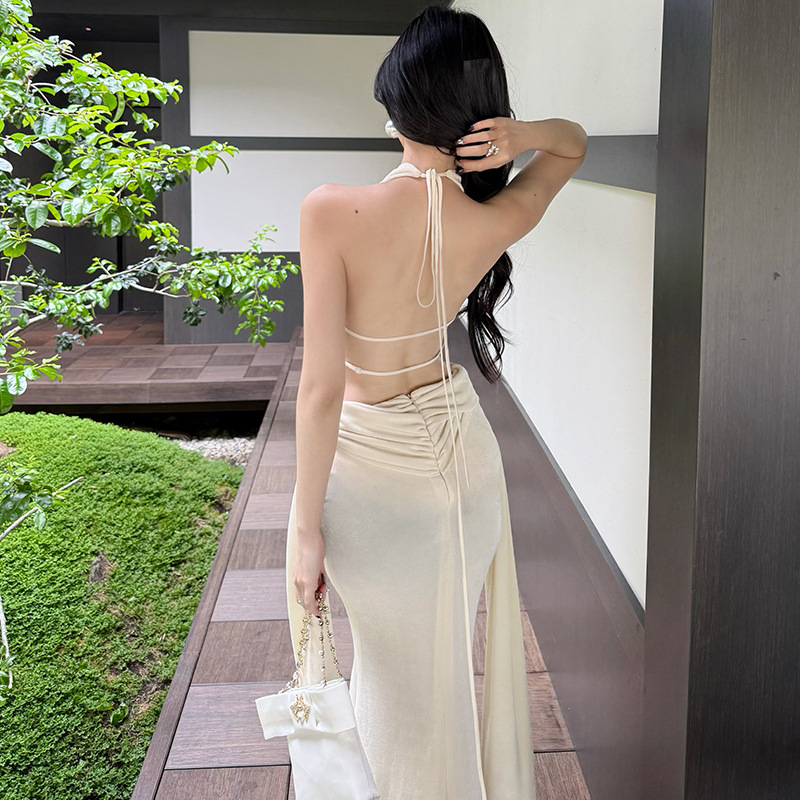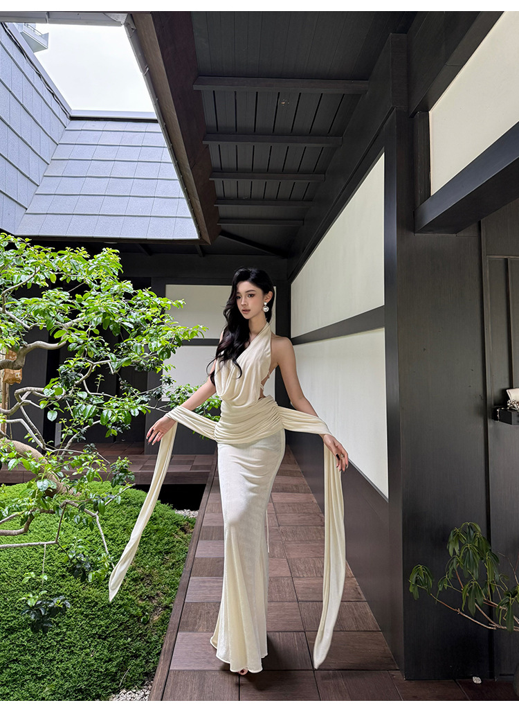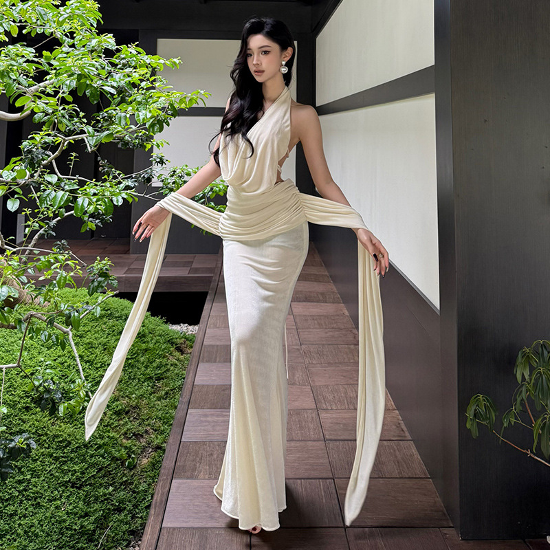 Sexy Chic Off-Shoulder Backless Halter Dress High-End Designer Unique One-of-a-Kind Evening Gown