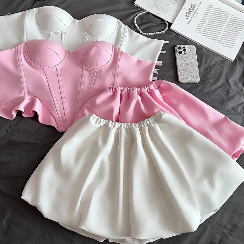 Sexy Chic Tube Short Top And Bud-Shape Skirt Set