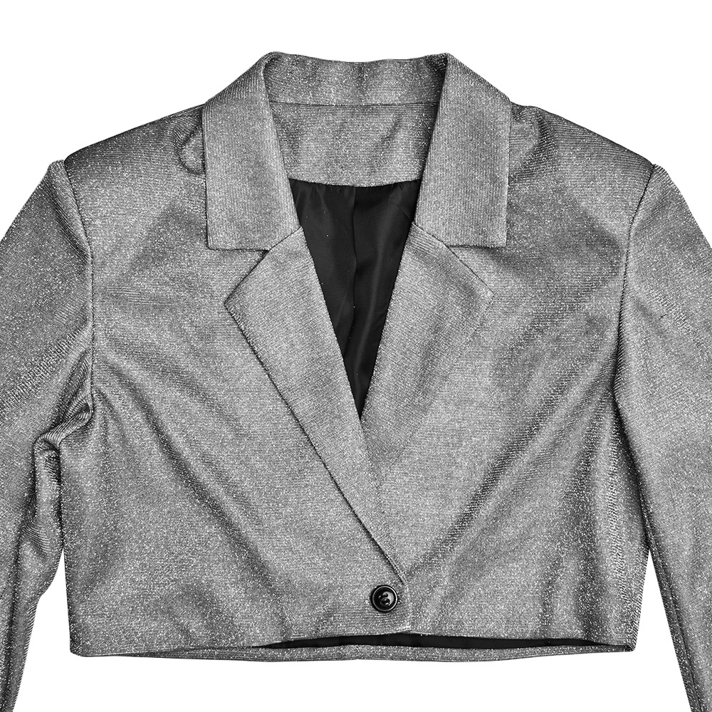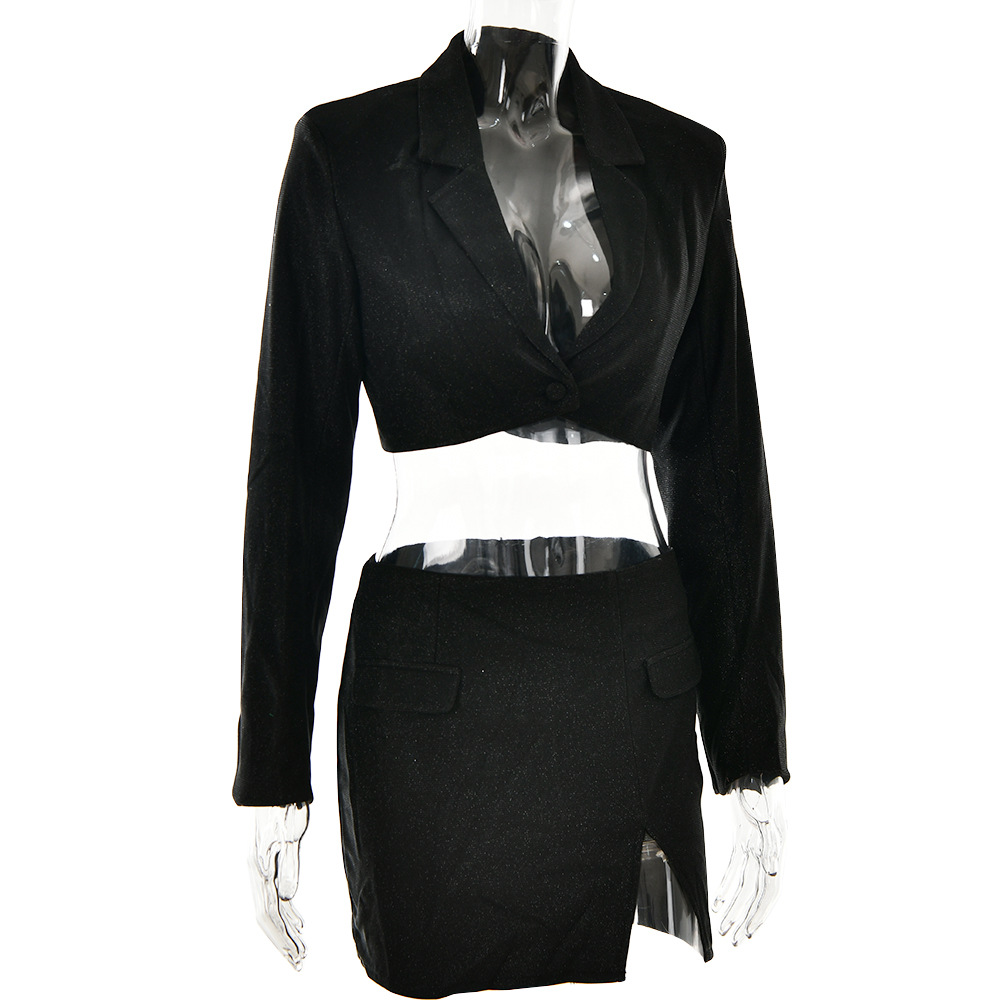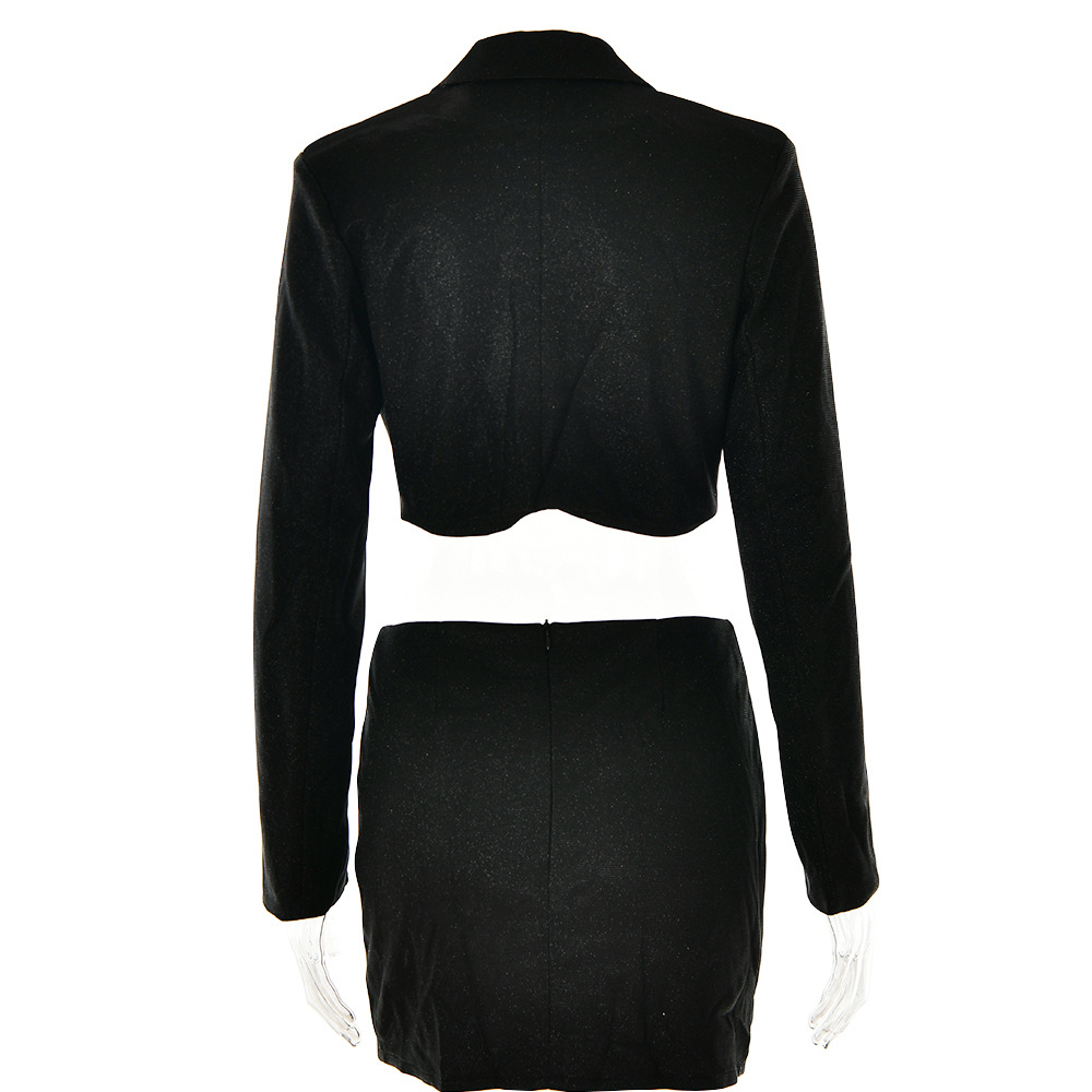 Sexy Cutout V-neck Long Sleeve Slim-fit Shiny Suit Top Skirt Two-piece Suit