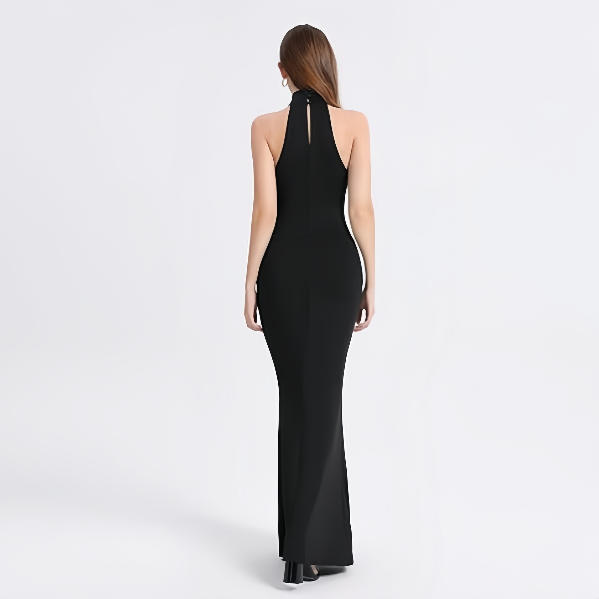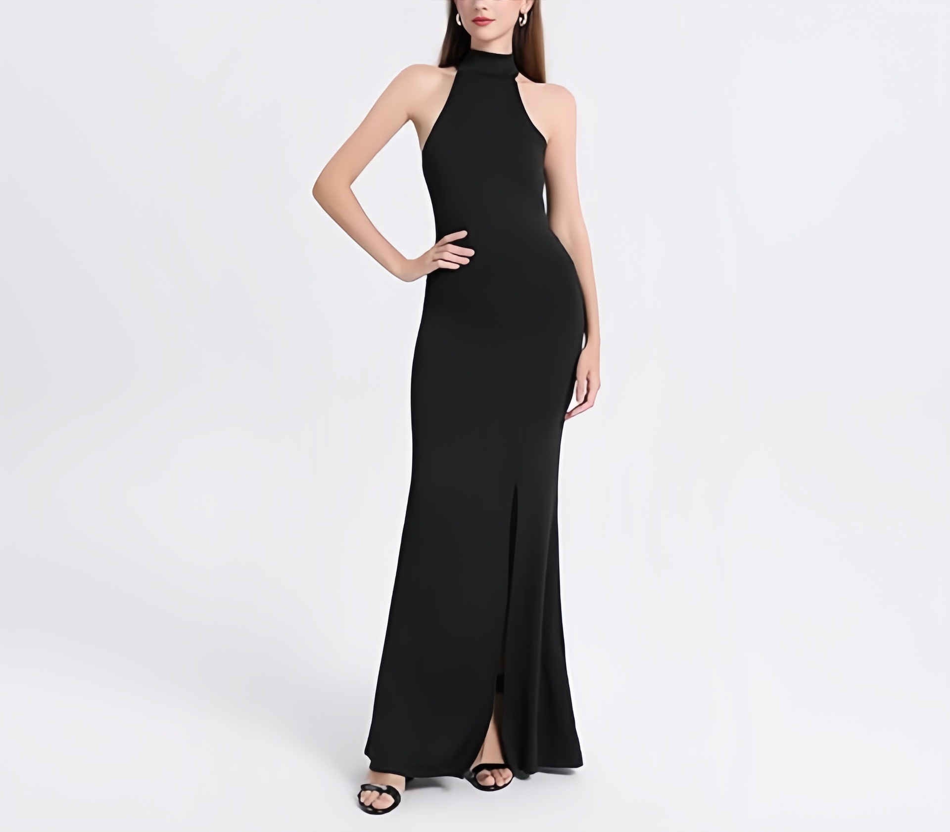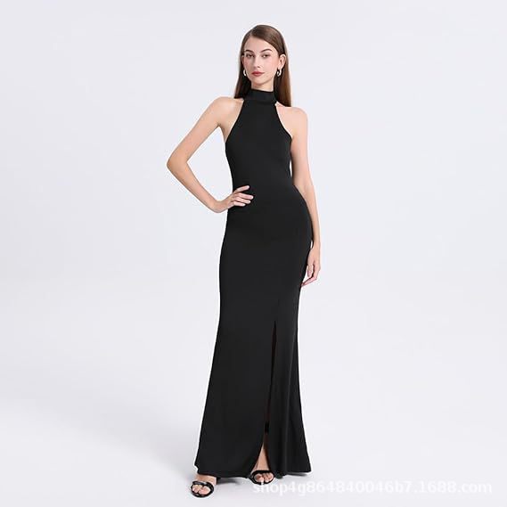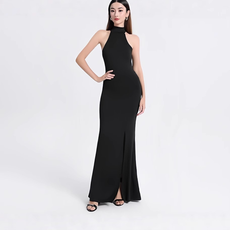 Sexy Halter Bodycon Solid Color Slit Sleeveless Maxi Dress Women