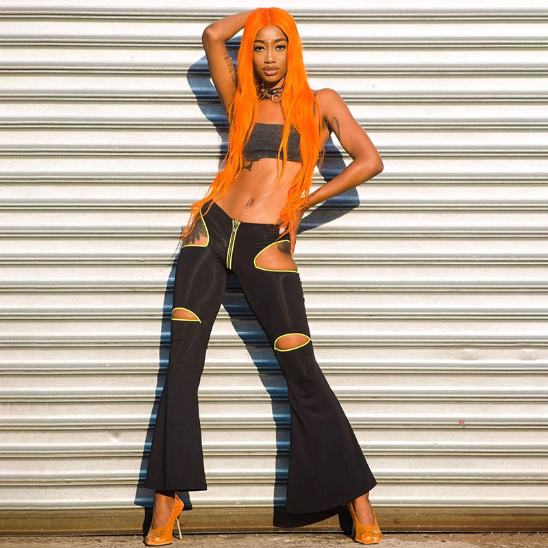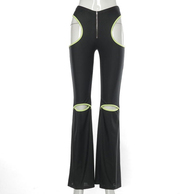 Sexy Hollow Out Flare Pants Street Fashion Female Casual Trousers