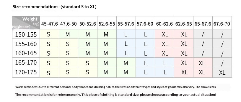 Note:1. Asian sizes are 1 to 2 sizes smaller than European and American people. Choose the larger size if your size between two sizes. Please allow 2-3cm differences due to manual measurement. 2. Please check the size chart carefully before you buy the item, if you don't know how to choose size, please contact our customer service. 3.As you know, the different computers display colors differently, the color of the actual item may vary slightly from the following images.