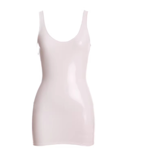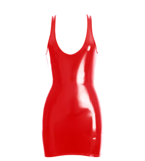 Sexy JK School Uniform Cosplay Patent Leather Coated PU Latex Spandex Tight Tank Top Sheath Dress