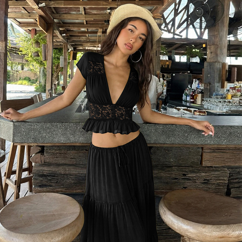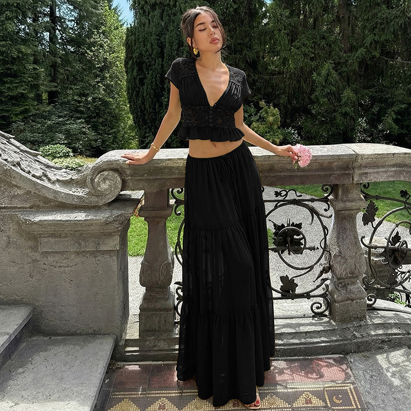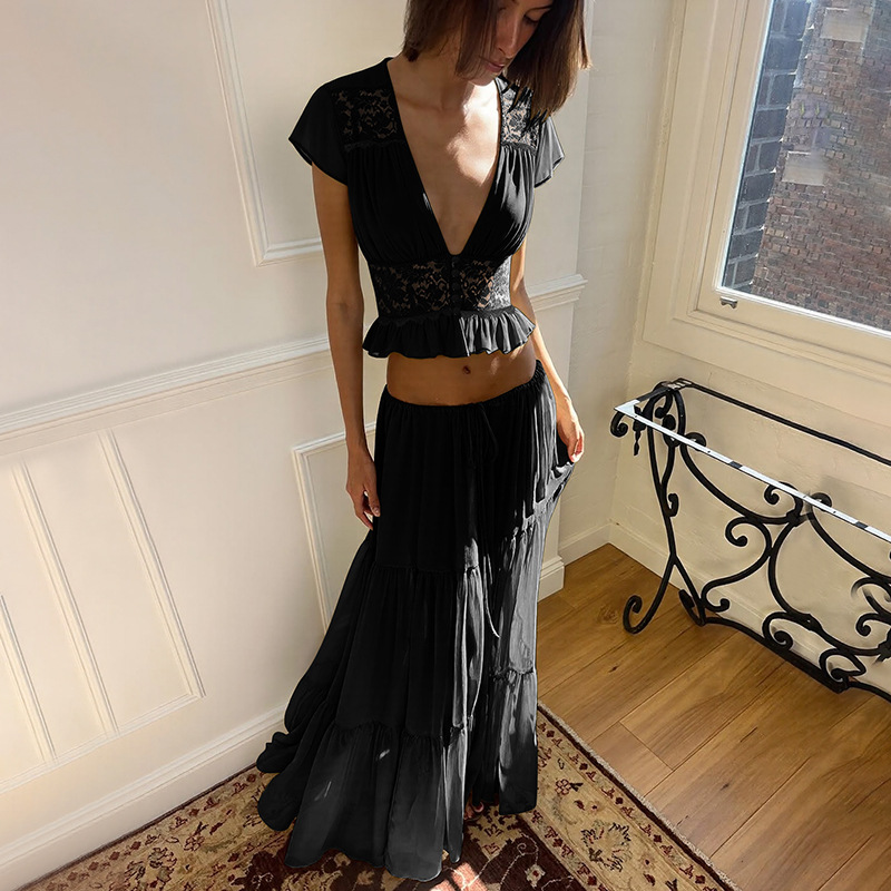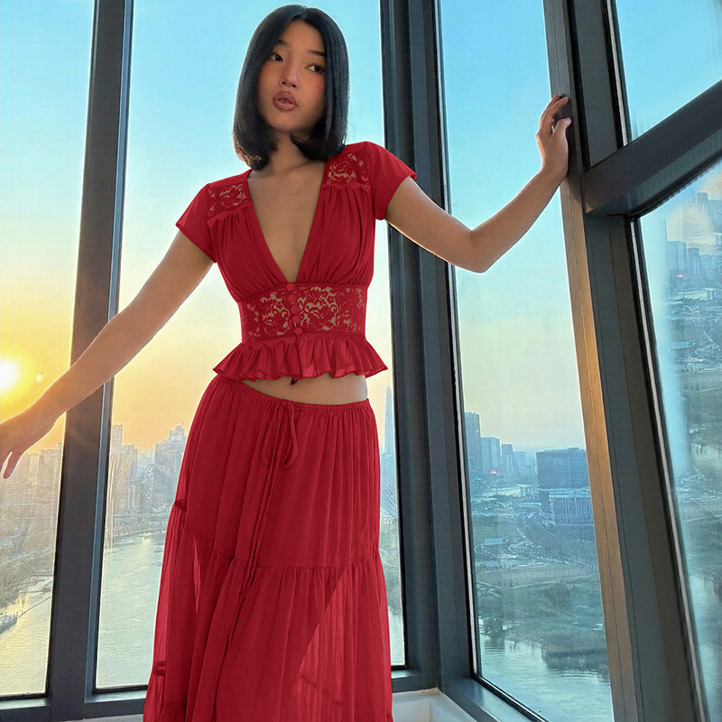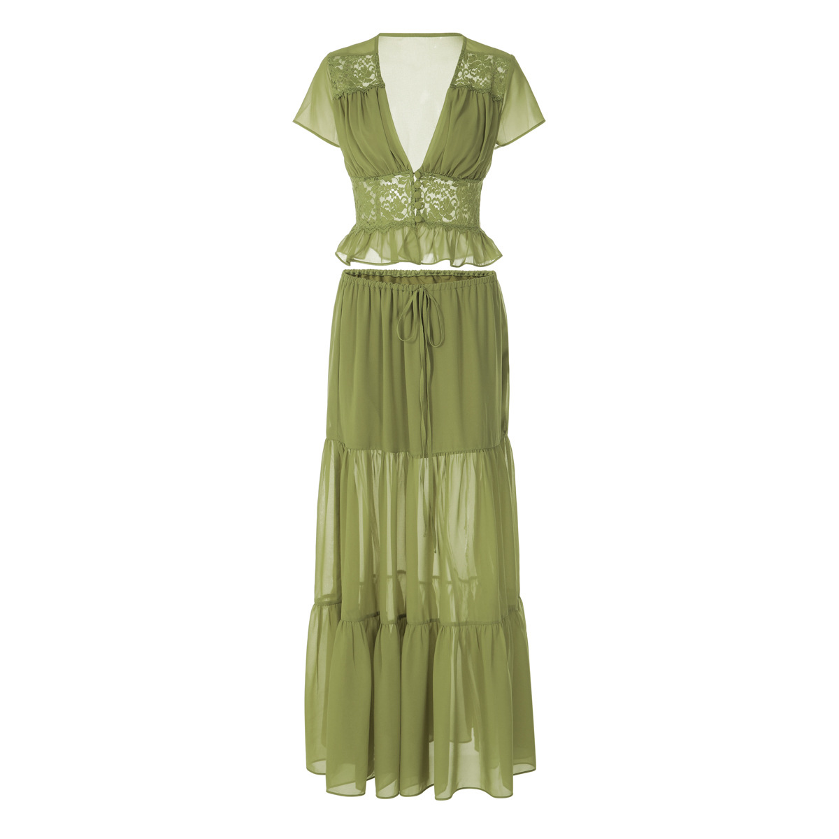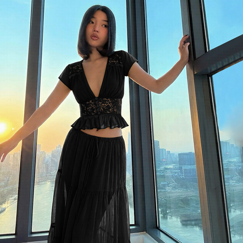 Sexy Lace Chiffon Cardigan T-shirt Loose Sheer Bandage Long Dress