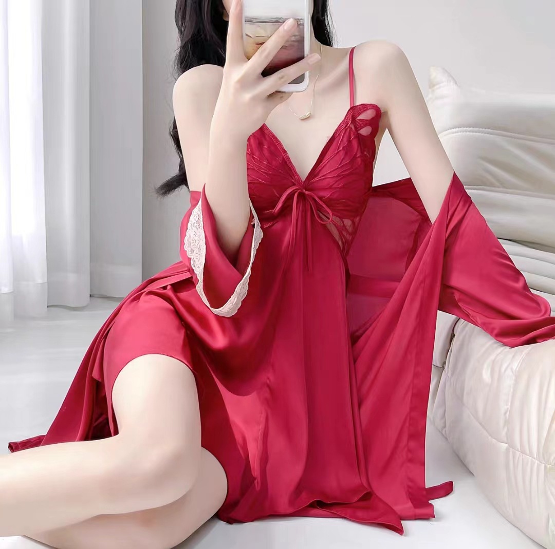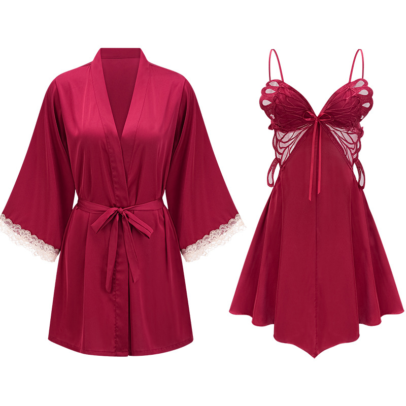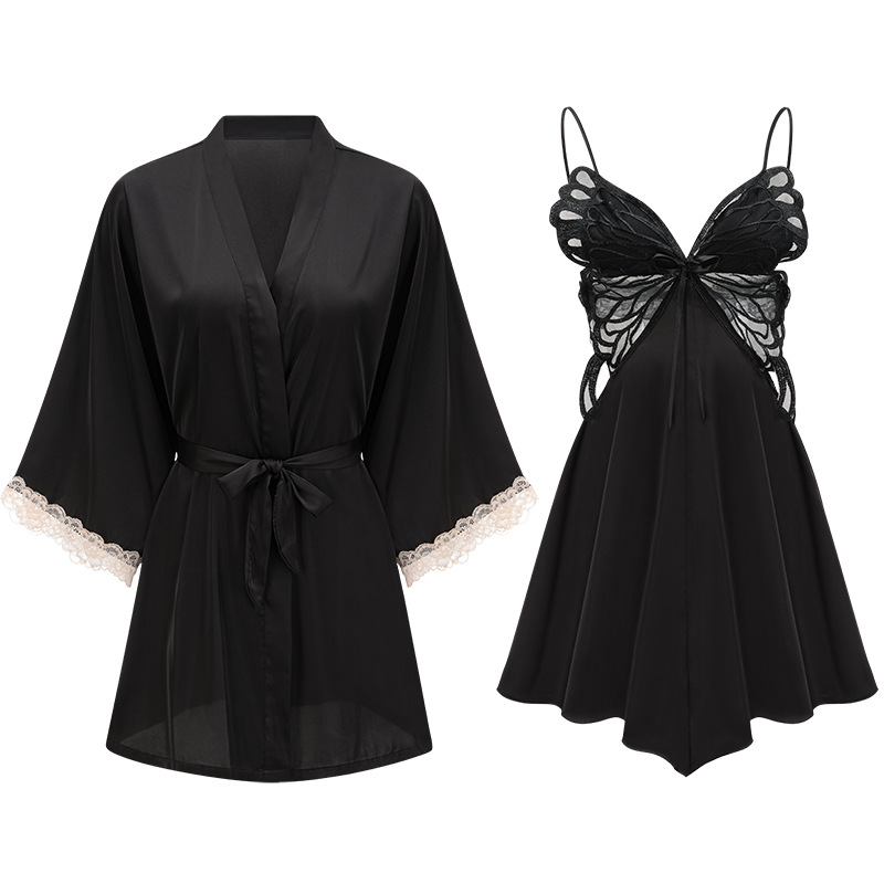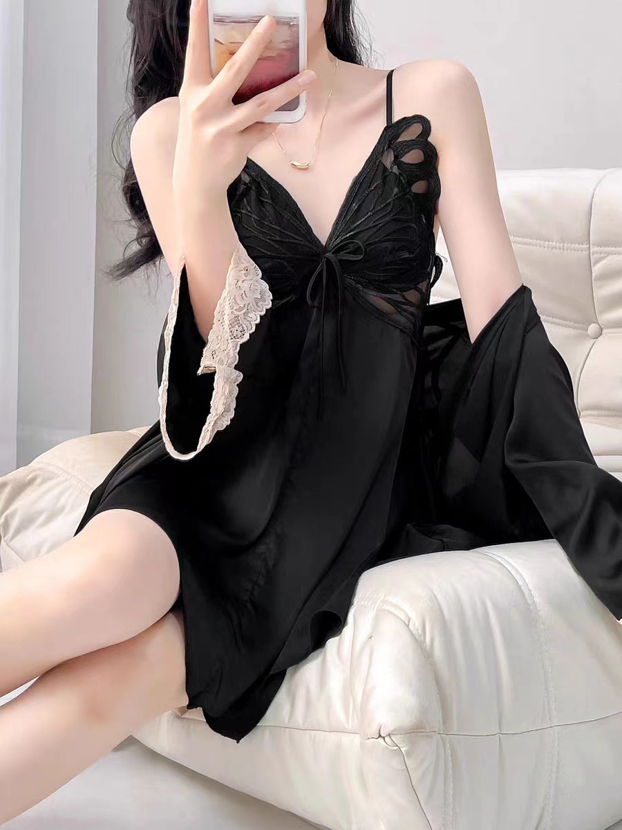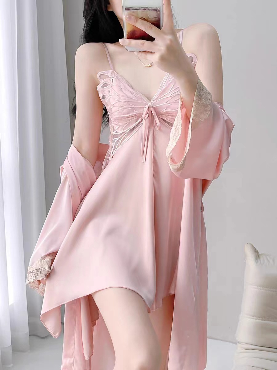 Sexy Lingerie Womens Pure & Alluring Butterfly Lace Slip Dress Two-Piece Set