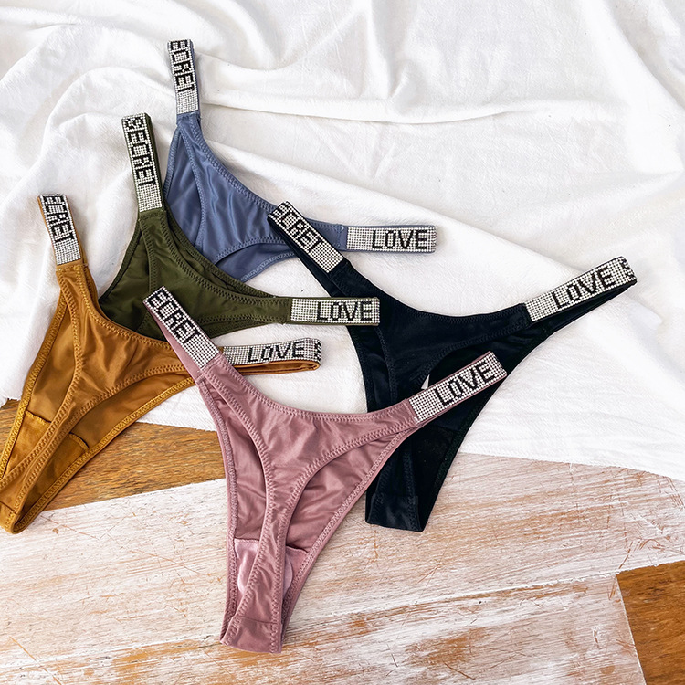 Sexy Rhinestones T-back Hip Lifting Low Waist