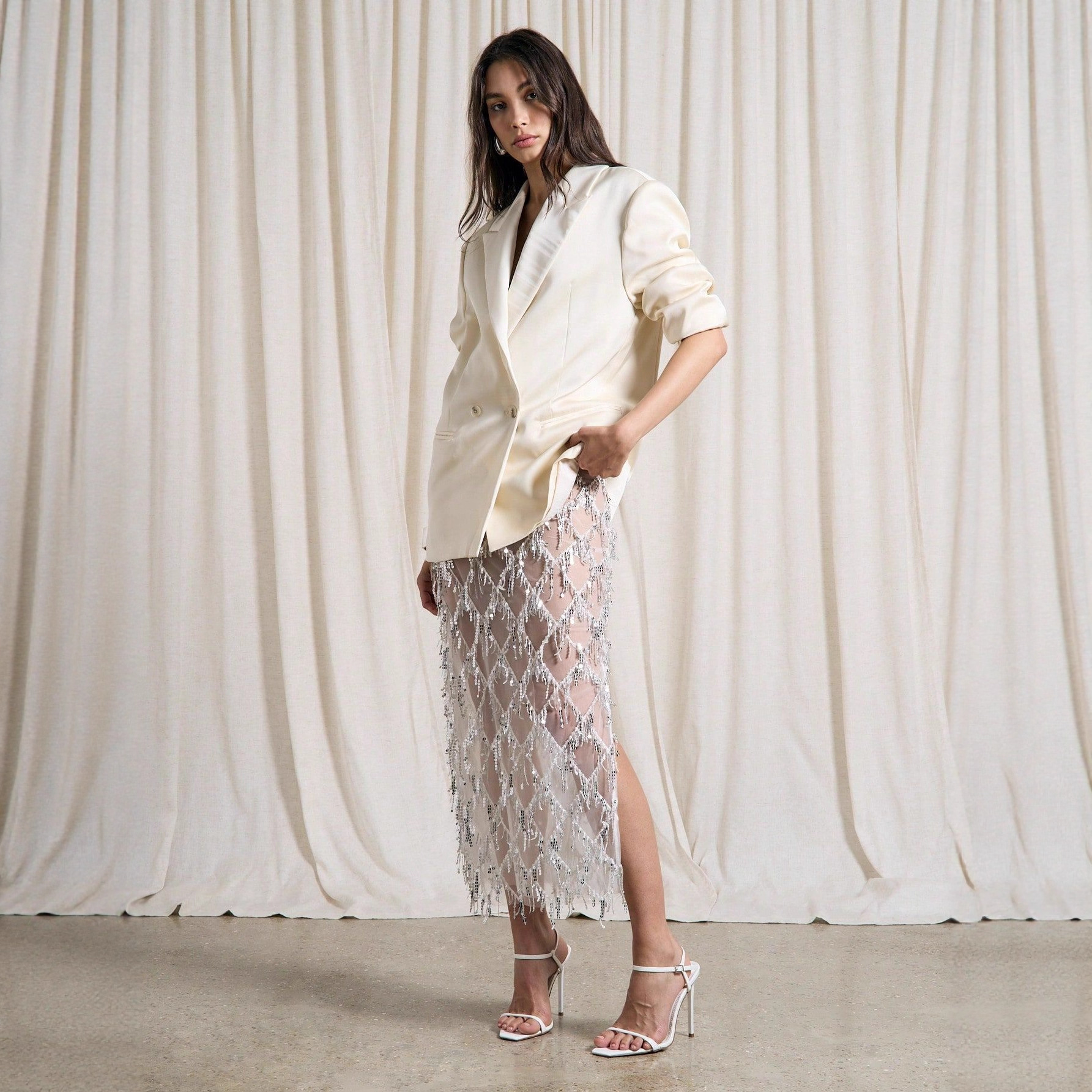 Popular elements: sequins, embroidery, zipper, tassel, slit, see-through, tulle, elastic waist