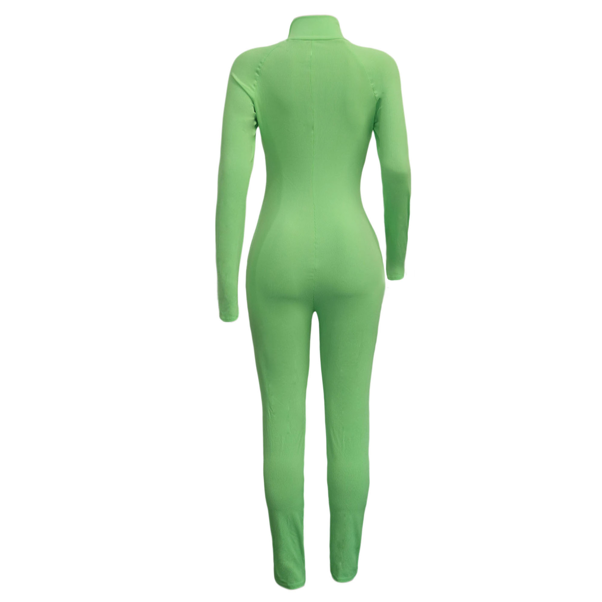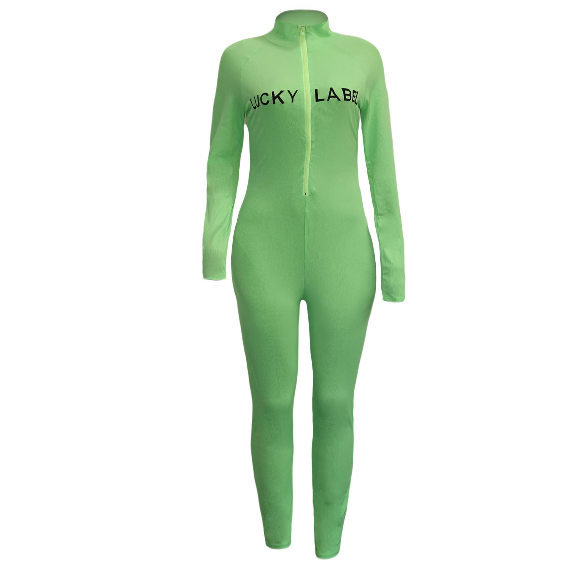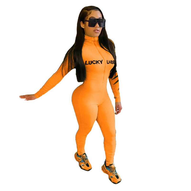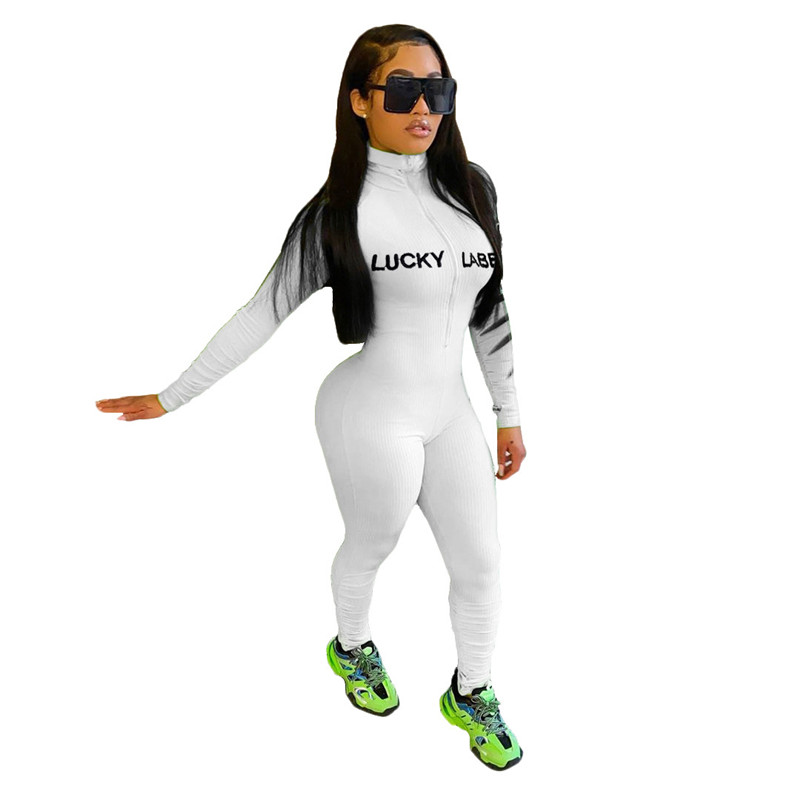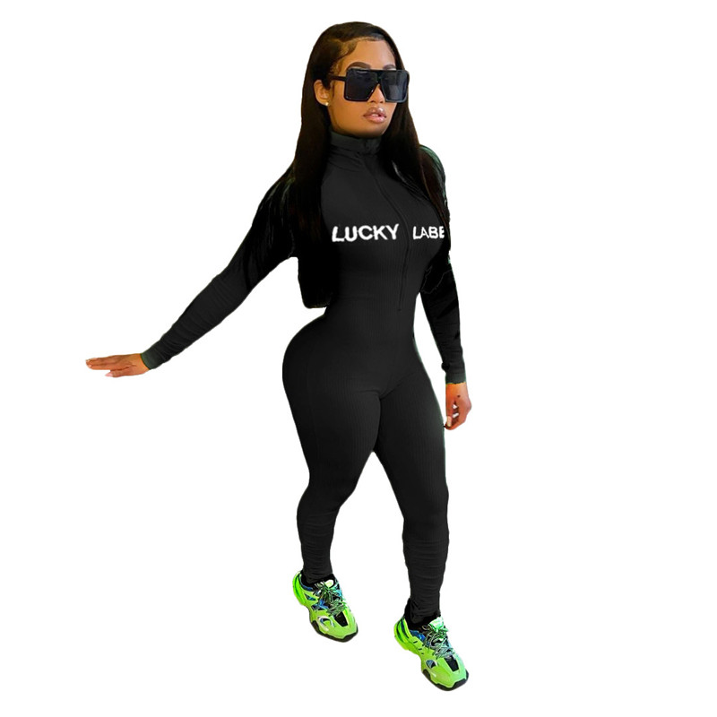 Name: S3877 European and American women's clothing wholesale sexy slim zipper solid color letter embroidery pit stripe one-piece trousers pencil pants