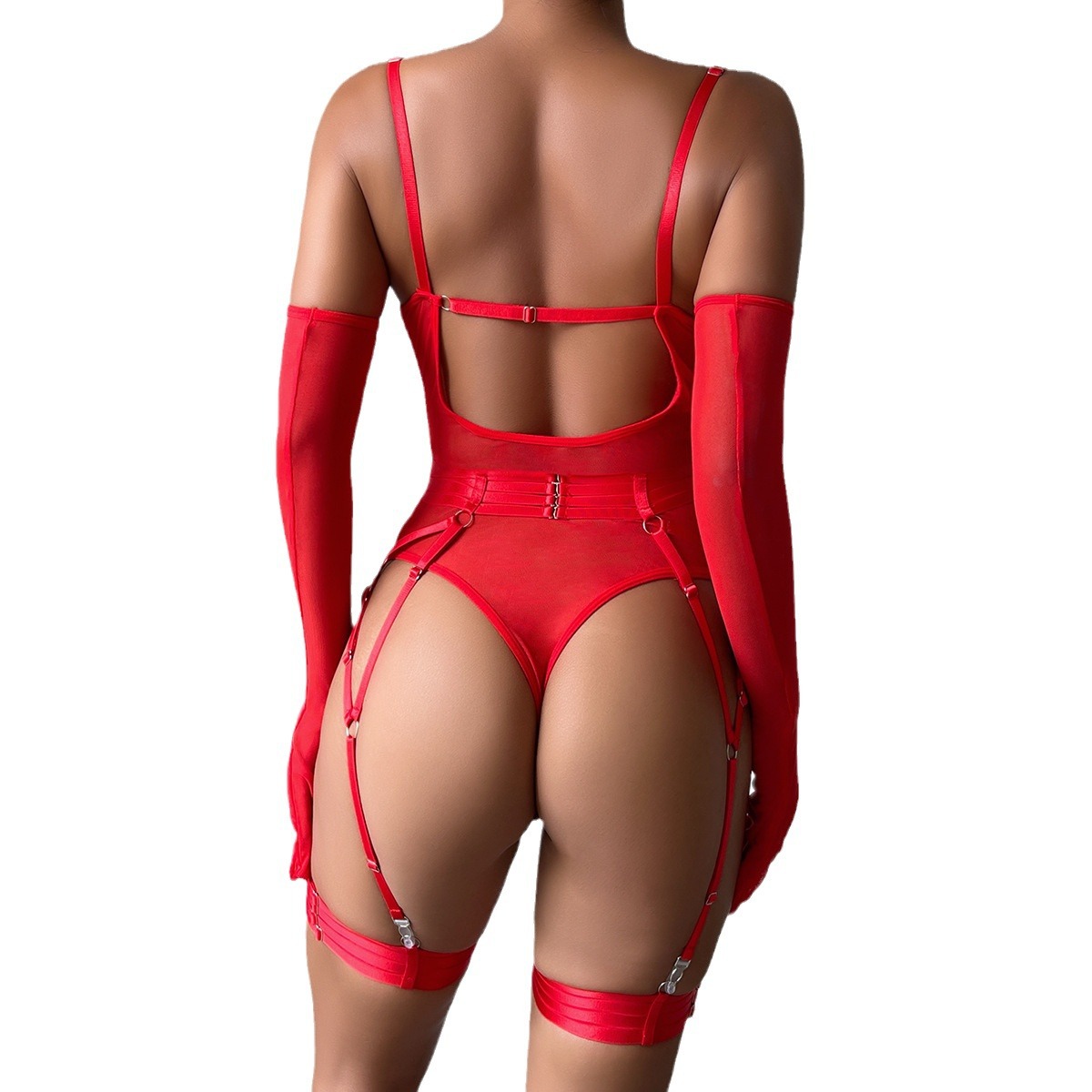 Sexy Sling One-piece See-through Strap Steel Ring Push Up Garter Underwear