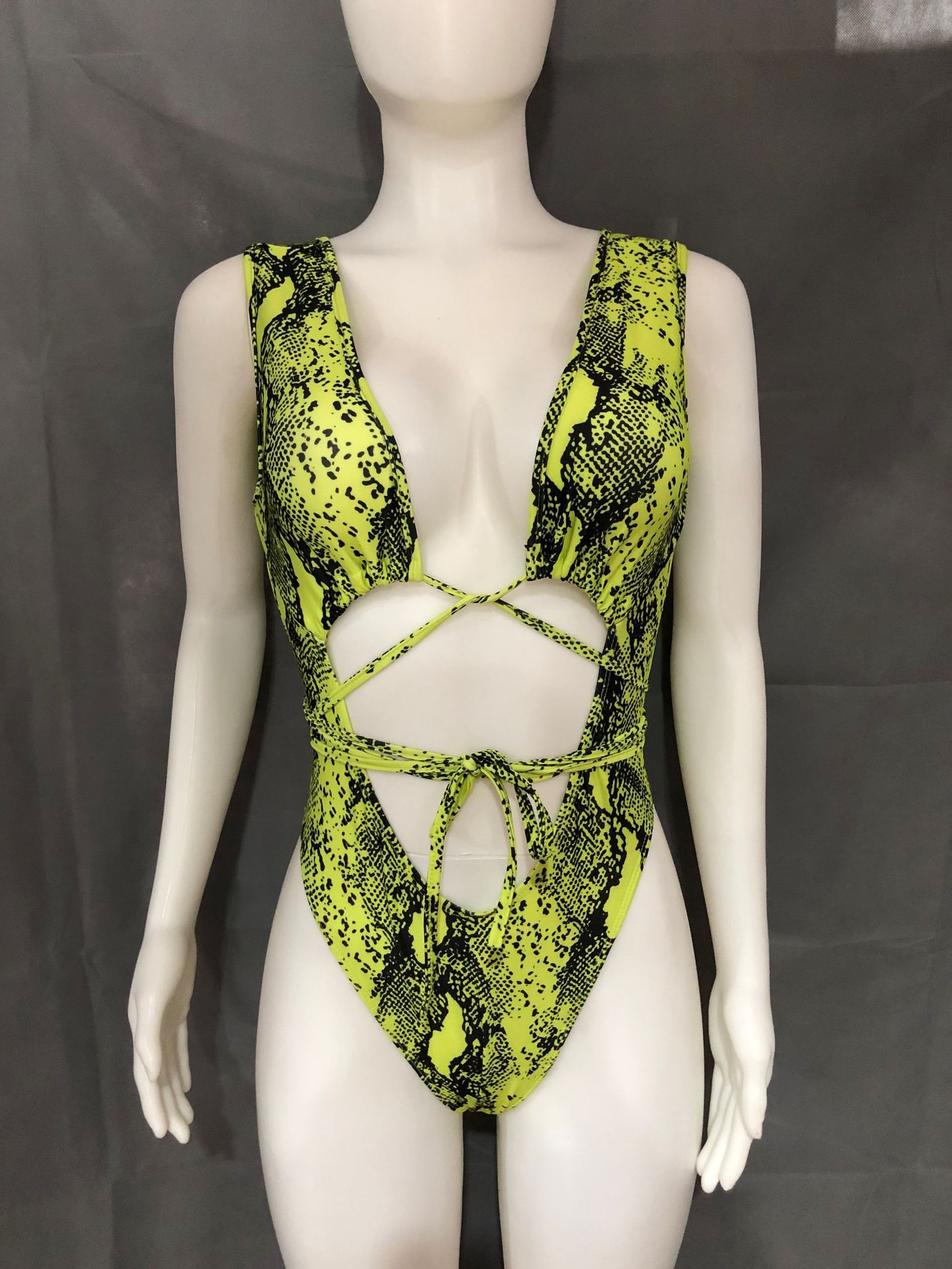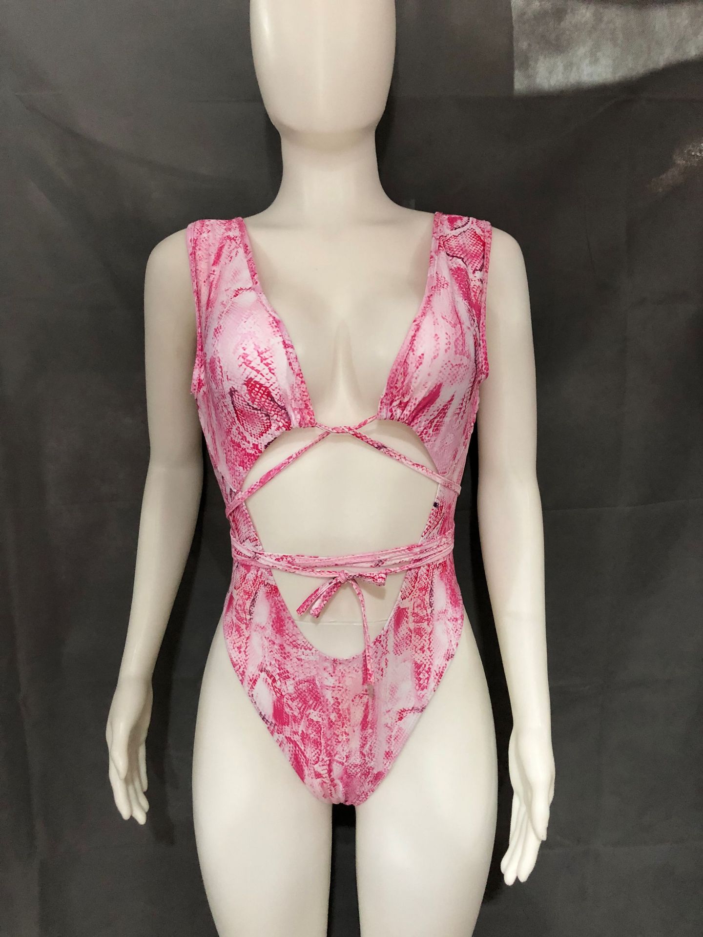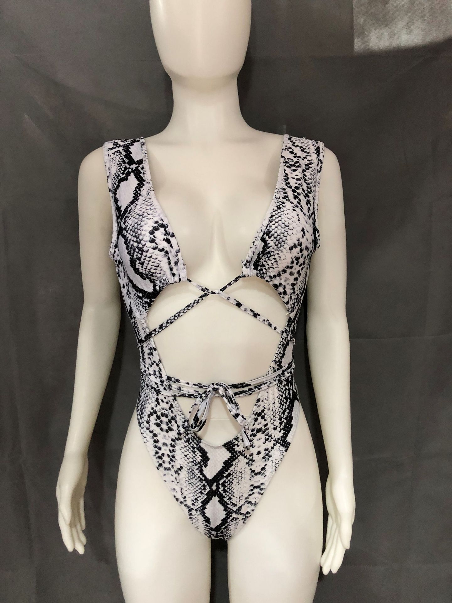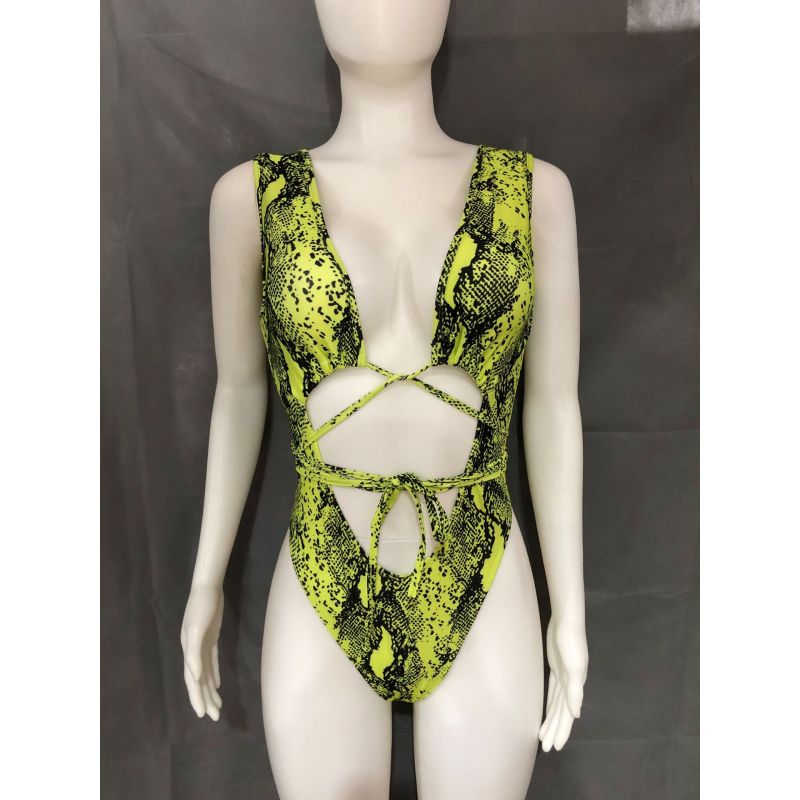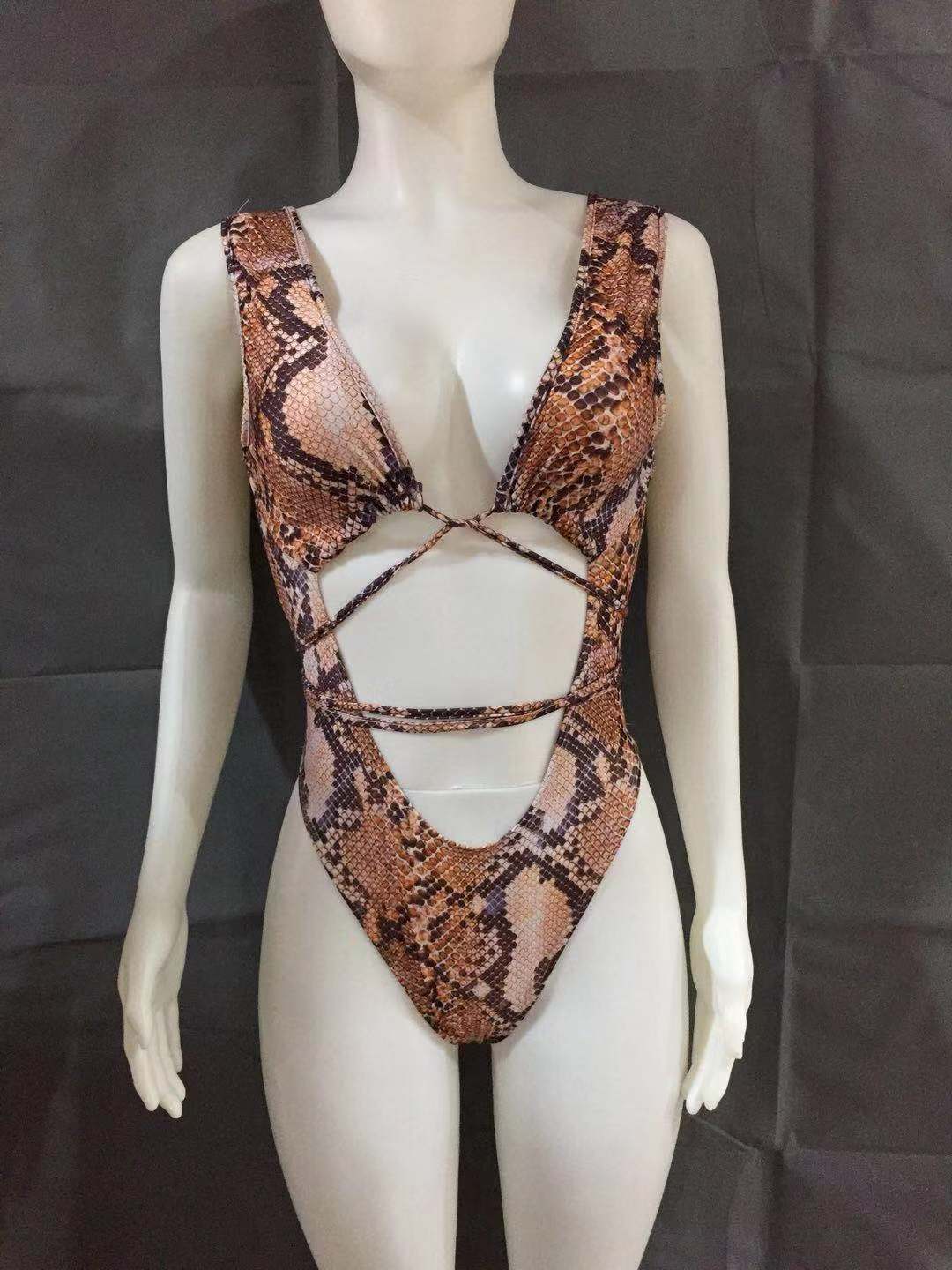 Sexy Snakeskin Pattern Printed Strappy One-piece Swimsuit