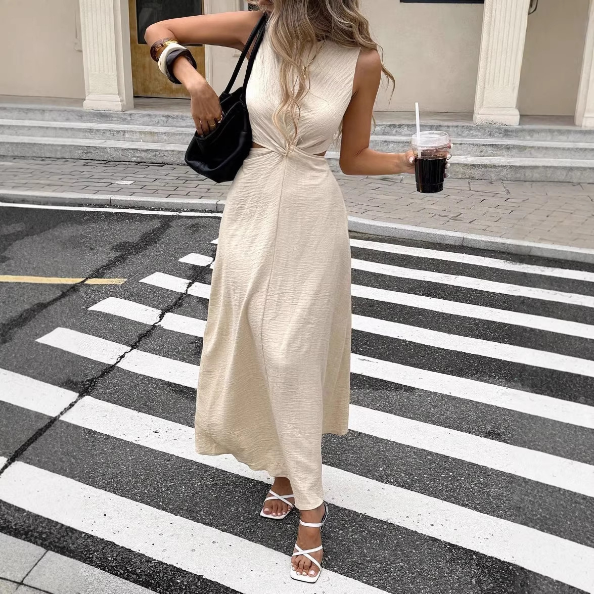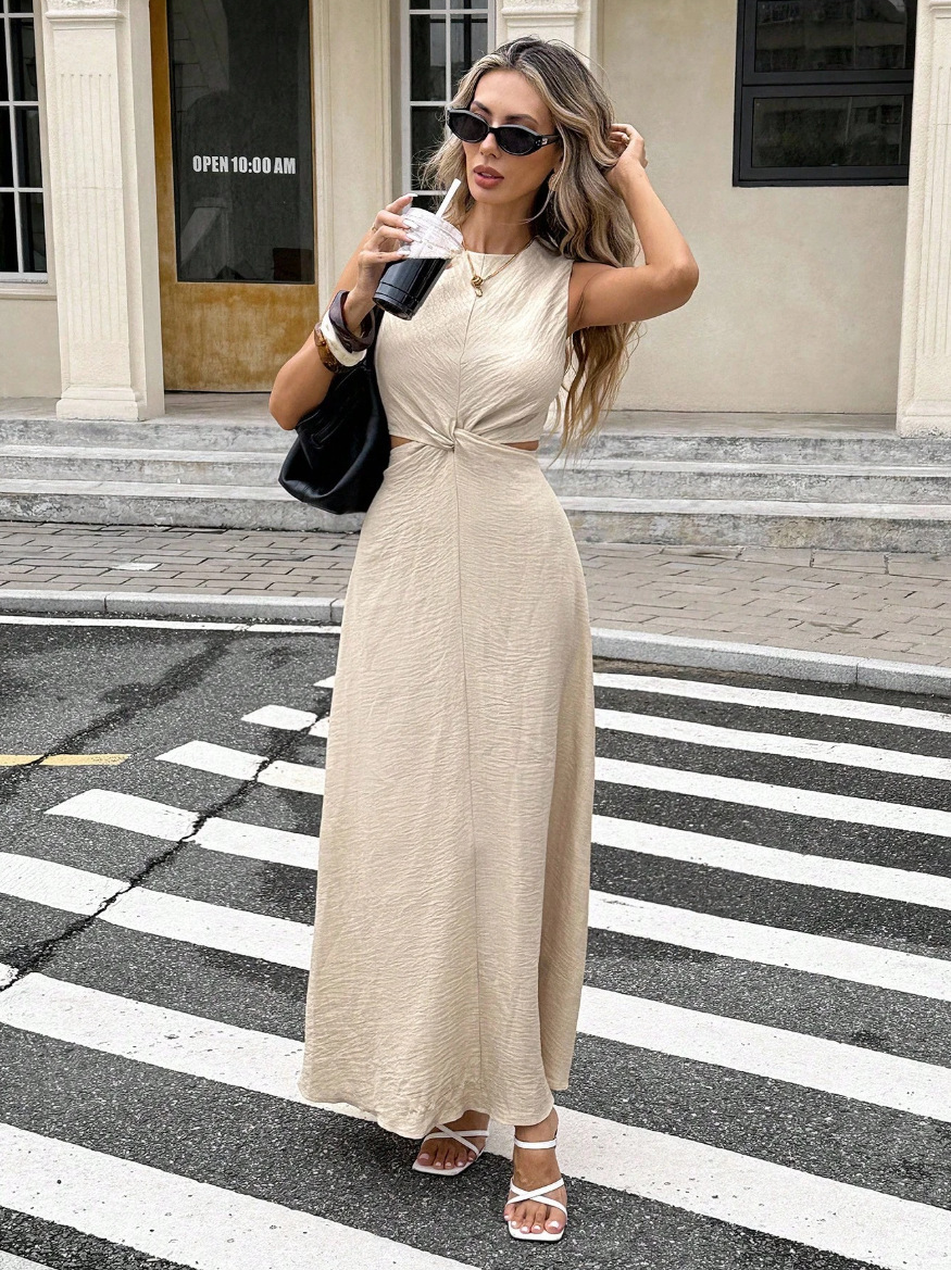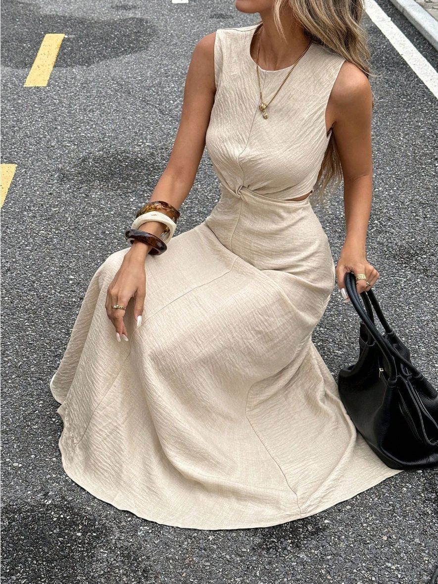 Sexy Stylish Sleeveless Twist-detail Crew-neck Slim-fit Pullover Dress