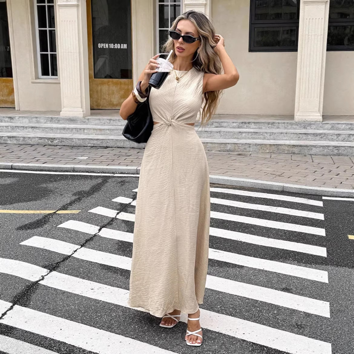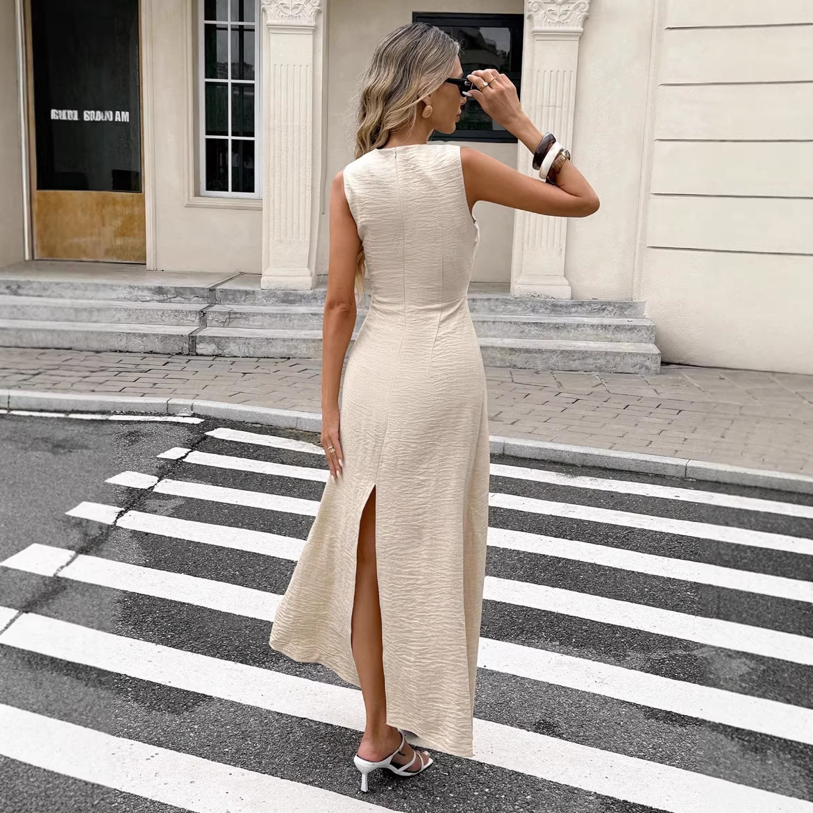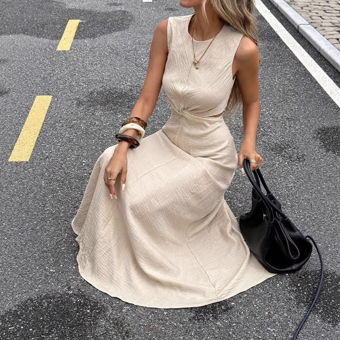 Sexy Stylish Sleeveless Twist-detail Crew-neck Slim-fit Pullover Dress