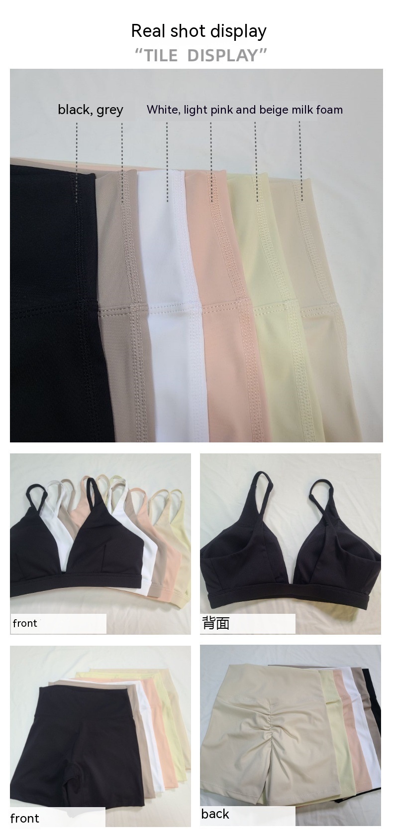 Color: white shorts suit, black shorts suit, light pink shorts suit, gray shorts suit, beige shorts suit, milk foam shorts suit