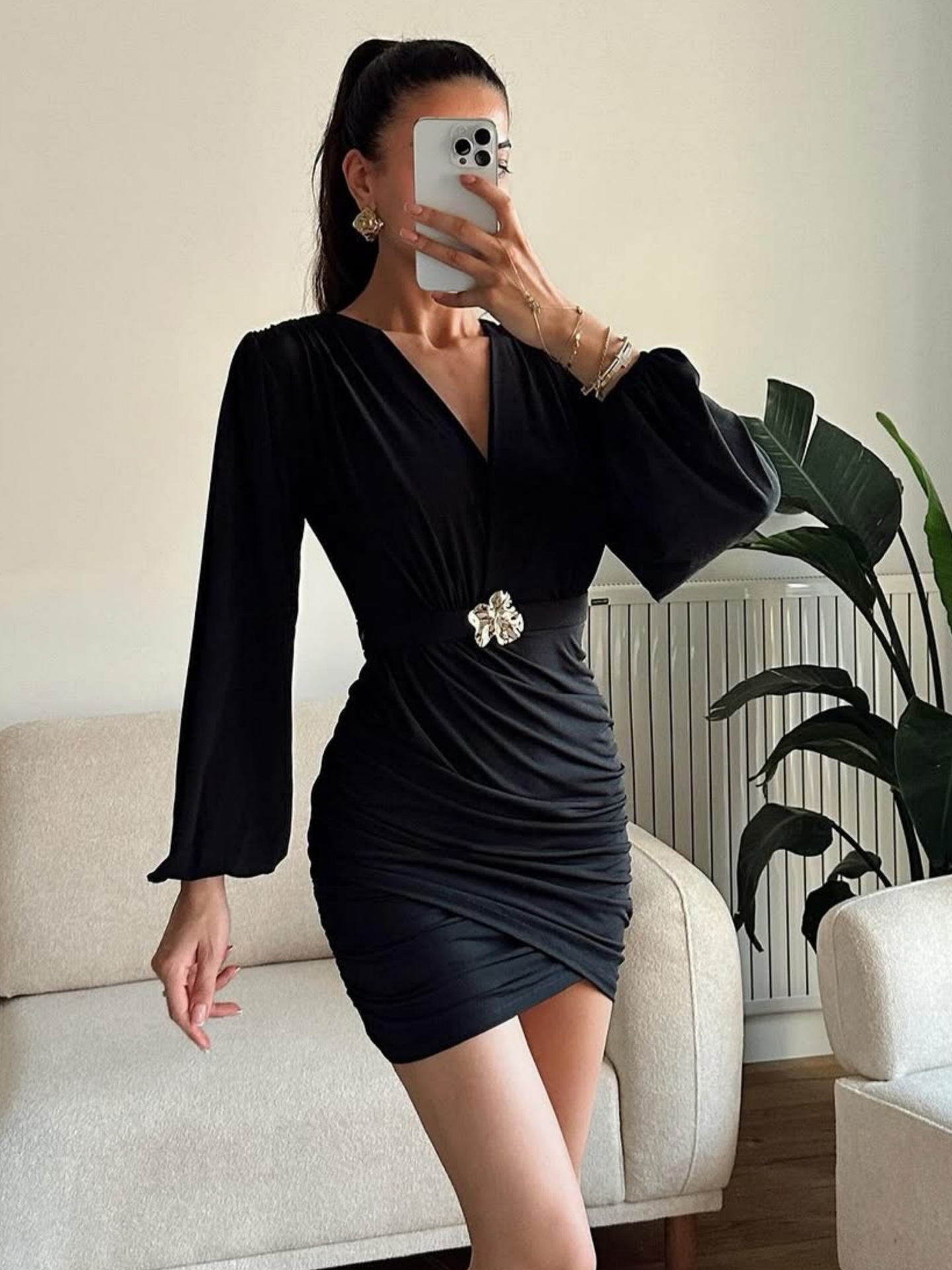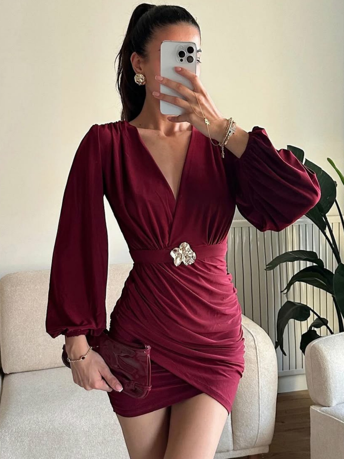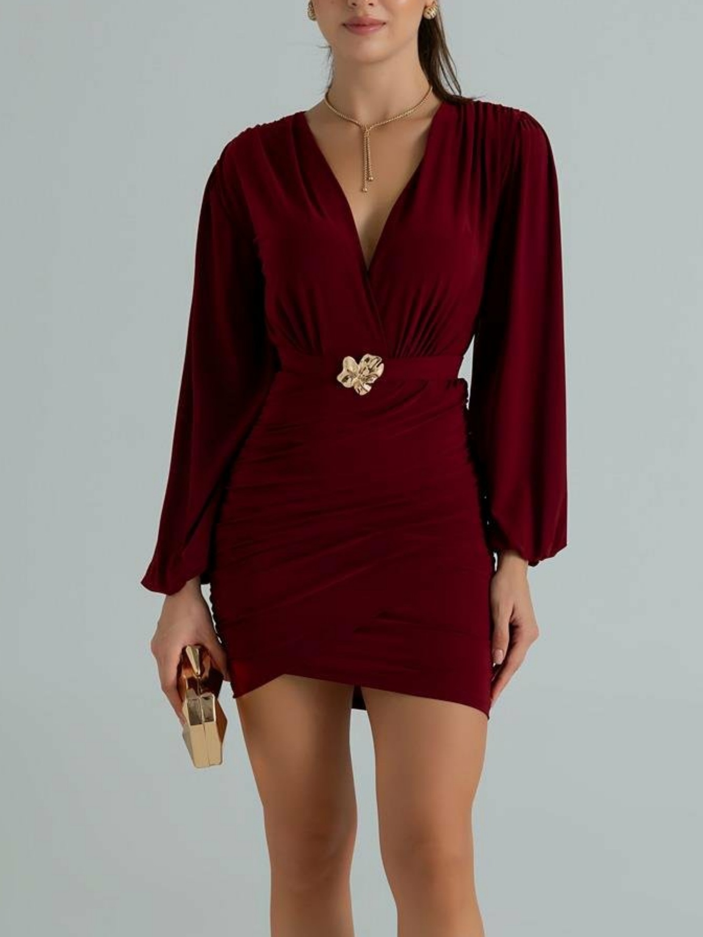 Trendy Elements: Solid Color, Pleats, Fashionable, Metal Accents, Crushed Texture