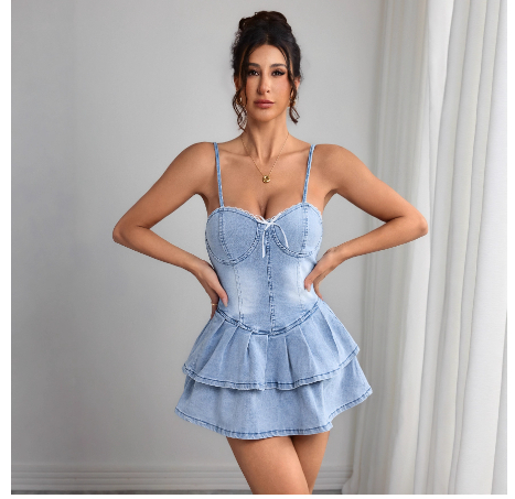 Sexy Yet Innocent-style Tube Denim Dress For Women
