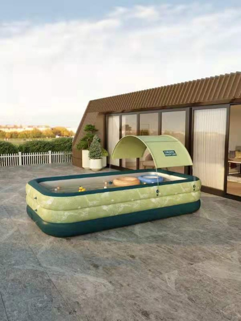Product information: Supply category: Spot Material: PVC Pool shape: Inflatable square Applicable age: over 3 years old Color: Deep sea blue, lotus root powder, avocado green Size: 3 meters three loops (wireless inflatable with shed),) Packing list: Swimming pool x1