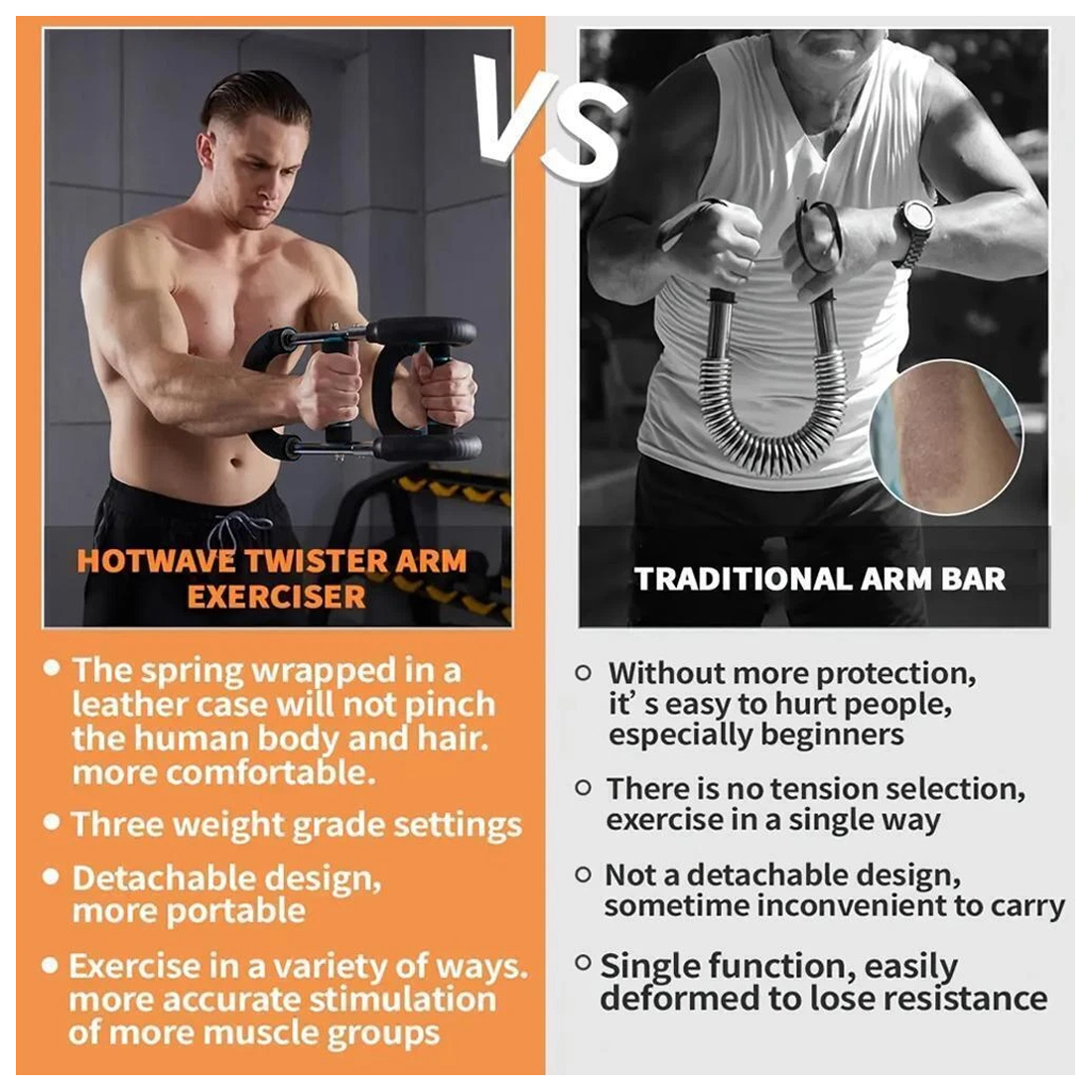 2. Safety and Comfort Focused: The Arm Trainer prioritizes your safety and comfort with its leather-wrapped metal construction to protect against injuries and thick, anti-slip foam handles that ensure a secure grip, even during intense workouts.