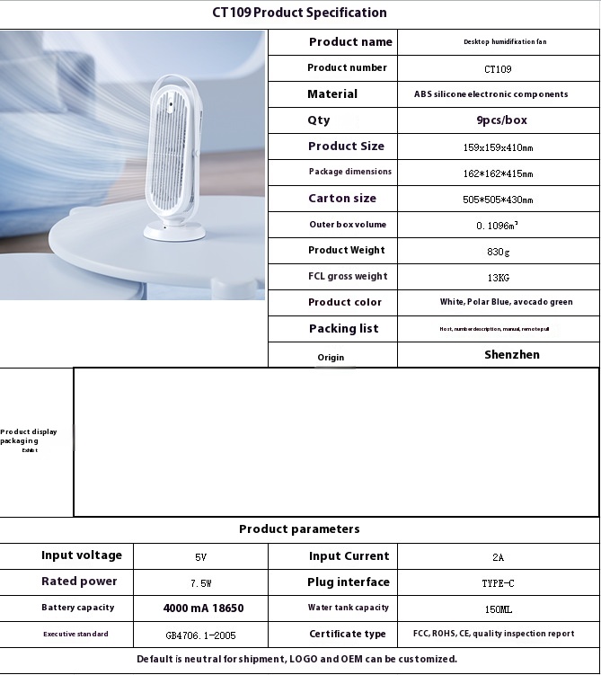Additional functions: Shaking head, infrared remote control, double air outlet, spray humidification, up and down positioning