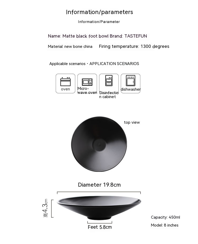 Color: 8-inch matte black feet bowl, 10-inch matte black feet Bowl (recommend)