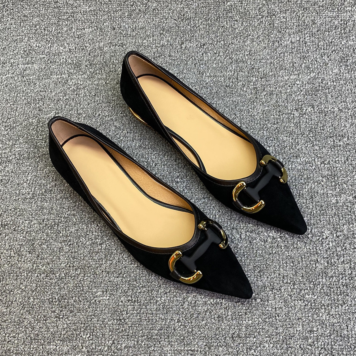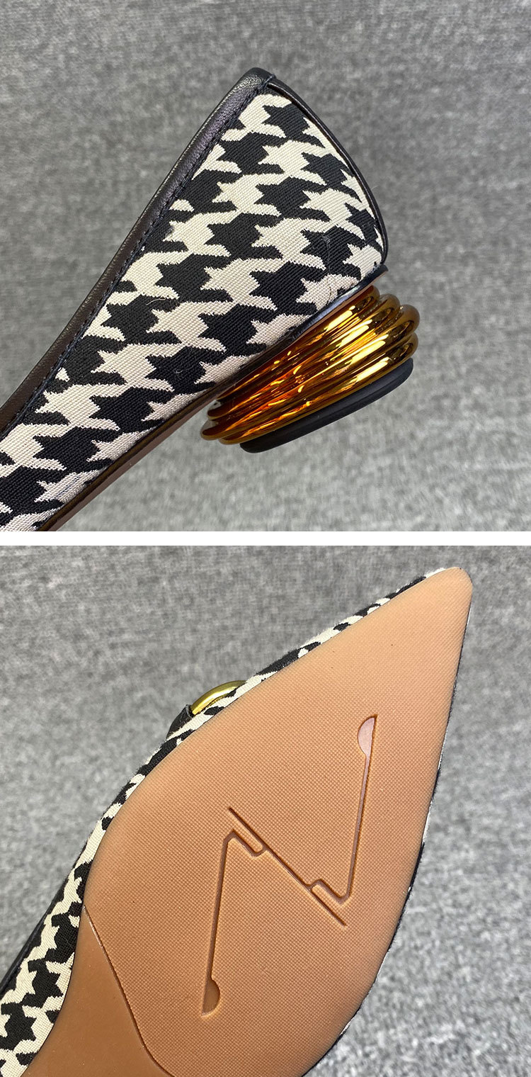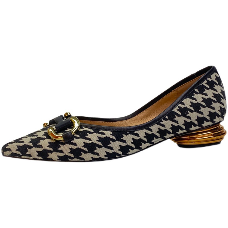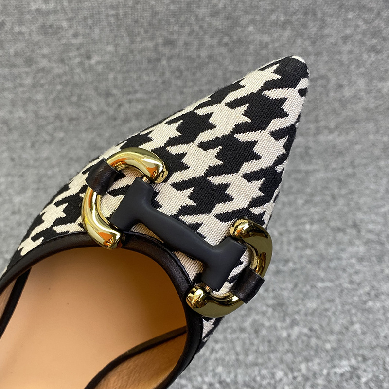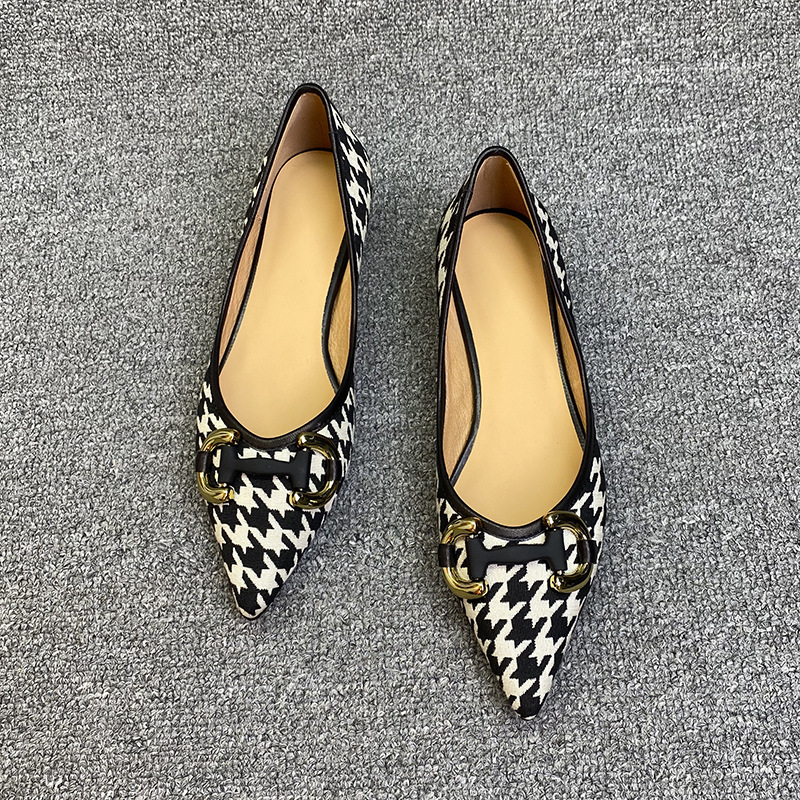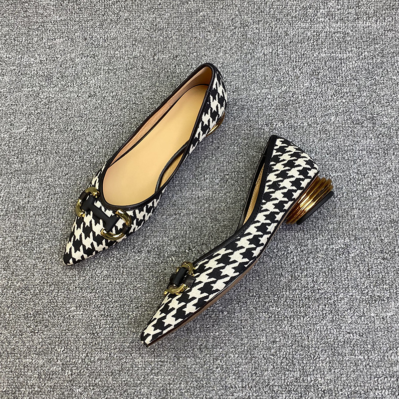 Shallow Metal Buckle Houndstooth Small Fragrant Style Low-heel Flat Shoes