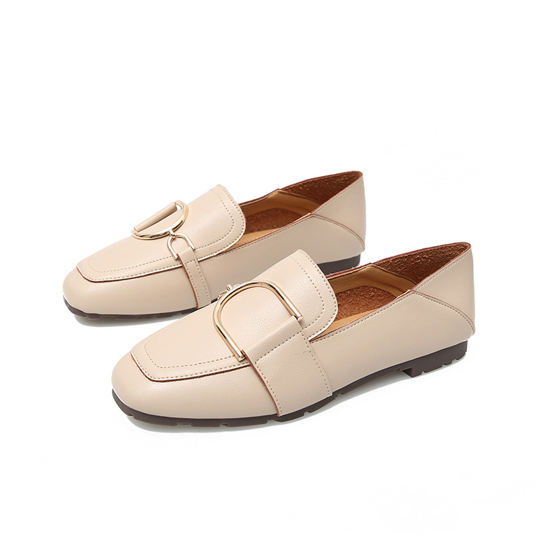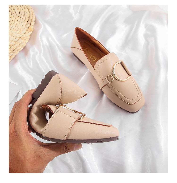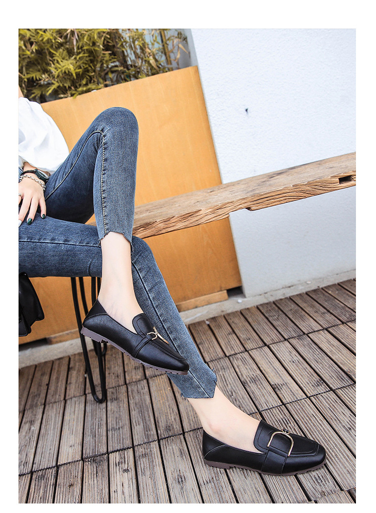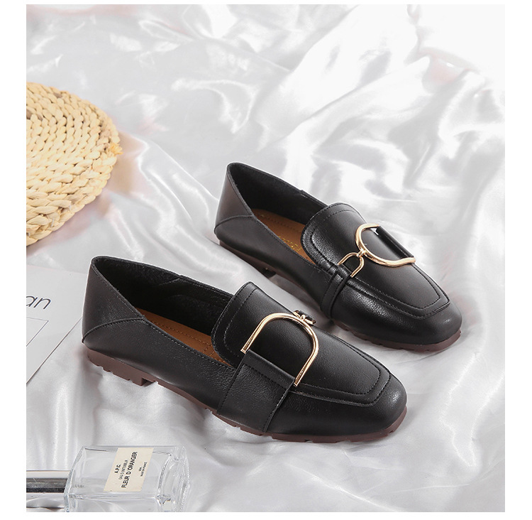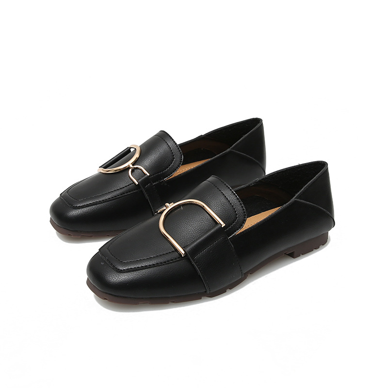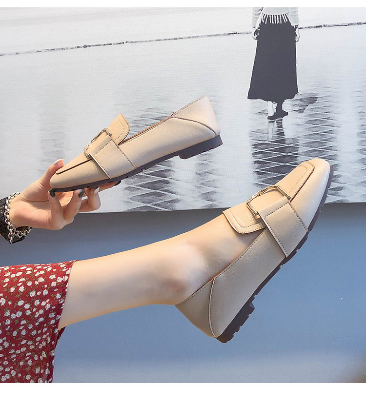 Shallow Mouth Flat British Style Small Leather Shoes Square Toe Soft Sole
